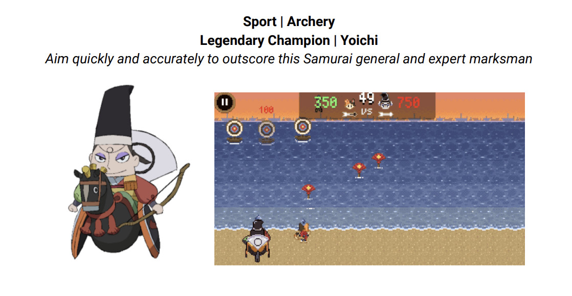 ในเกมจะมีมินิเกมในธีมของกีฬาโอลิมปิก จำลองการแข่งขันกีฬาเอาไว้หลายประเภท เช่น ปิงปอง สเก็ตบอร์ด ปีนหน้าผา ยิงธนู รวมแล้วมีถึง 7 กีฬาเลยทีเดียว ในแต่ละกีฬาเองก็จะมีแชมป์ของกีฬานั้นๆอยู่โดยได้แรงบันดาลใจมาจากตัวละครที่มีตัวตนจริงในวัฒนธรรมญี่ปุ่นนั่นเอง เช่น เทนงู
