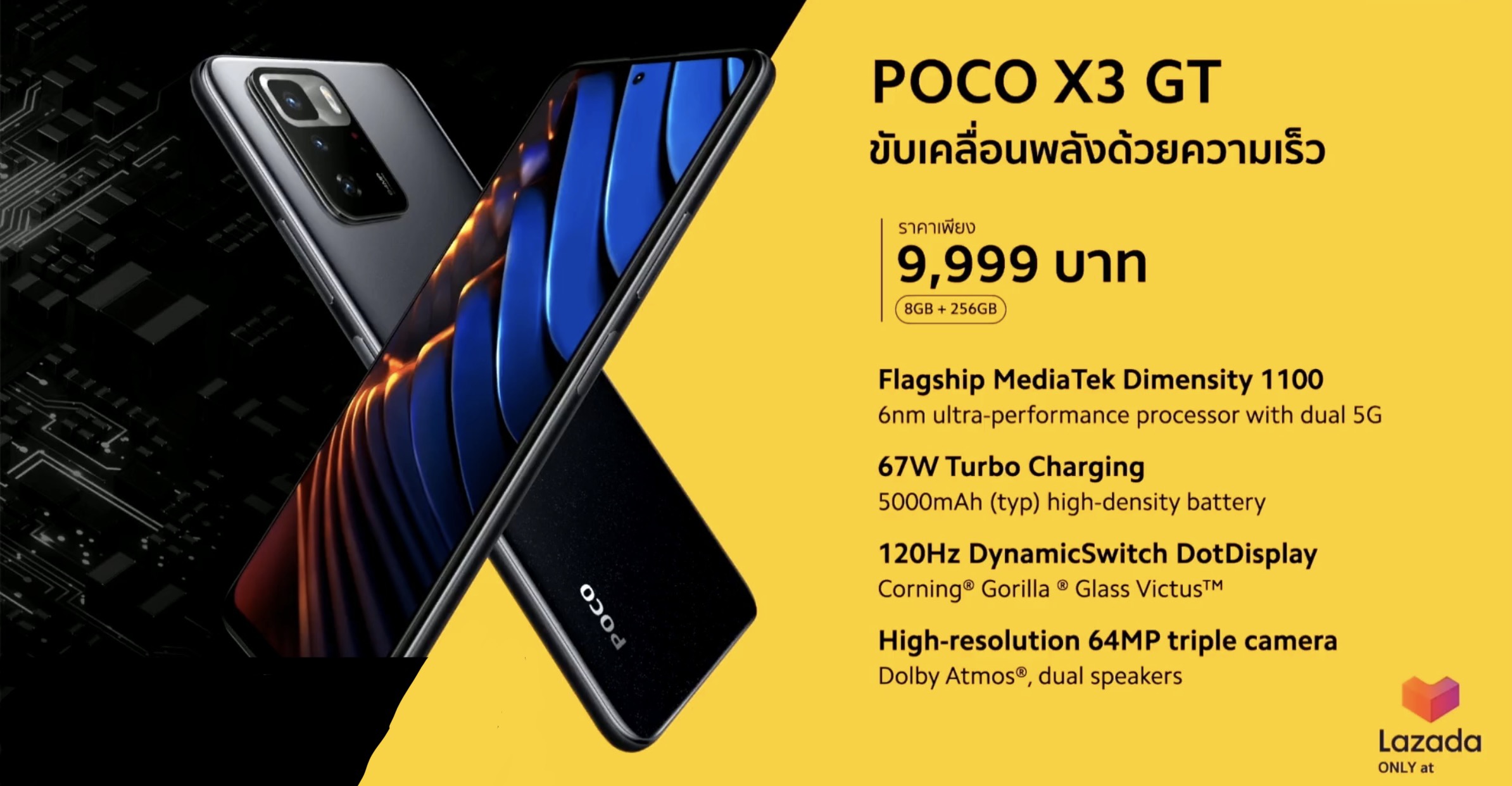 หลังจากที่เปิดตัวในเมืองนอกไม่ทันไร ก็เปิดตัวในประเทศไทยอย่างเป็นทางการแล้วกับ POCO X3 GT รอบนี้สเปกจัดเต็มมาก ทั้งในเรื่องของจอ ชิปประมวลผล กล้อง แบตเตอรี่ การชาร์จ เอาเป็นว่าจัดเต็มแทบทุกด้าน ราคาก็ดีด้วยนะต่ำหมื่น แถมดีไซน์ดูไลฟ์สไตล์มากขึ้นด้วย