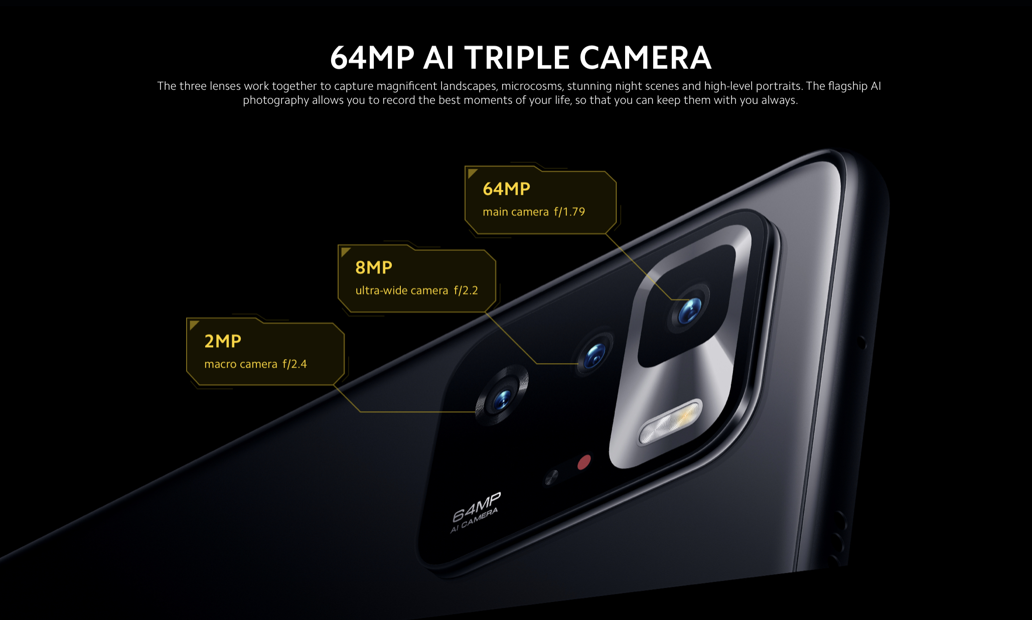 - 64MP main camera f/1.791.4μm large pixel (4-in-1)