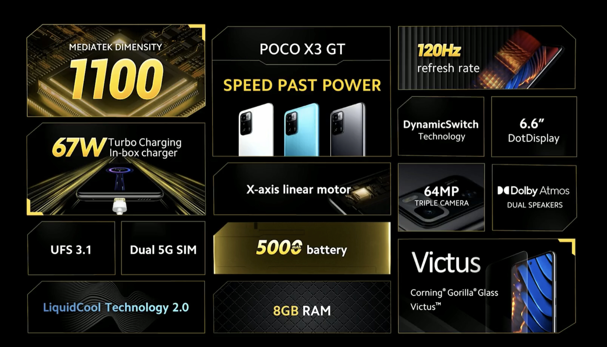 - ชิปประมวลผล: MediaTek Dimensity 1100