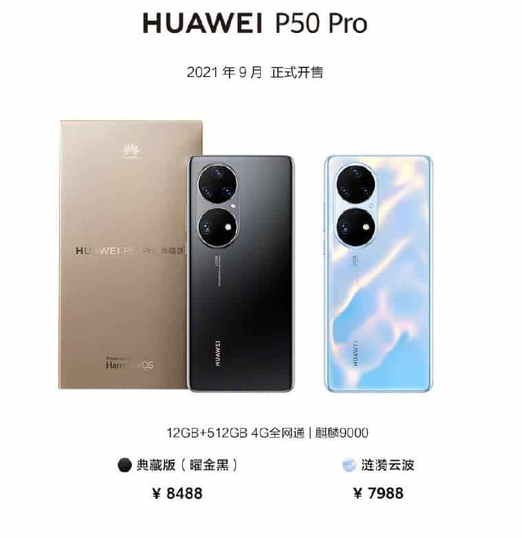 Huawei P50 จะเริ่มวางขายในเดือนกันยายนนี้ รุ่น RAM 8 GB/ความจุ 128 GB ราคาอยู่ที่ 4,500 หยวน (22,916 บาท )ส่วนรุ่น RAM 8 GB/ความจุ 256 GB ราคาอยู่ที่ 5,000 หยวน (25,460 บาท)