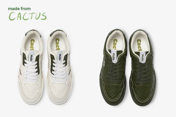 MoEa  ได้ปฏิวัติวงการรองเท้าใหม่ด้วยการไม่ผลิตรองเท้าจากหนังและพลาสติก แต่หันมาใช้วัสดุชีวภาพ มีตั้งแต่เนื้อองุ่นจากอุตสาหกรรมไวน์อิตาลี ใบสับปะรดจากอุตสาหกรรมผลไม้ของฟิลิปปินส์  ข้าวโพดที่บริโภคไม่ได้จากอุตสาหกรรมข้าวโพดของอเมริกา และใบต้นกระบองเพชรจากแม็กซิโก  MoEa ได้นำเส้นใยผลไม้และพืชเหล่านี้มาใช้งานร่วมกับผ้าฝ้าย หรือผสมกับโพลียูรีเทนชีวภาพ เพื่อสร้างวัสดุชีวภาพกลุ่มใหม่ที่มีผลกระทบต่อสิ่งแวดล้อมน้อยกว่าที่สามารถจะวัดได้ ทำให้ออกมามีลักษณะเหมือนกับหนัง จริงๆ แต่สามารถระบายอากาศได้ดี และที่สำคัญสามารถรีไซเคิลได้ด้วย