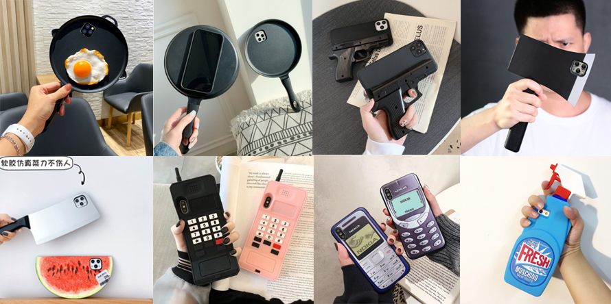 ชิ้นที่สองเป็นเคส iPhone สุดแปลก ใช้ได้จริง แต่จะเก็บใส่กระเป๋าได้ไหมต้องมาดูกันอีกที มีทั้งรูปกะทะ มีด ปืน ขวดน้ำยาเช็ดกระจก หรือเคสรูปมือถือรุ่นเก่า เป็นมือถือซ้อนมือถือไปอีก ราคาเริ่มต้นมีตั้งแต่ 29 บาทไปจนถึงหลักร้อยเลยค่ะ