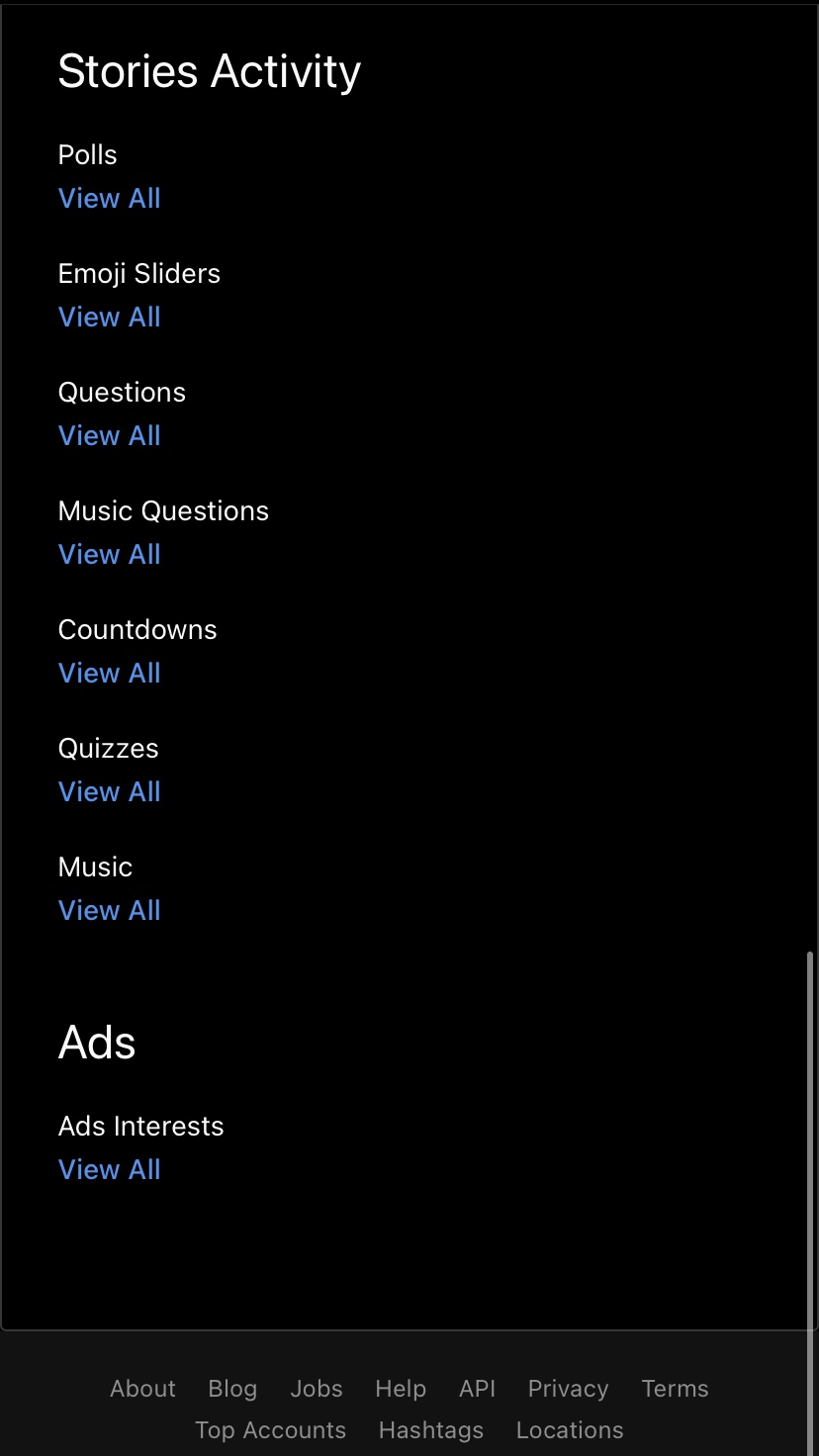 จะมีข้อมูลการเคลื่อนไหวของบัญชีอยู่หลายอย่าง ไม่ว่าจะเป็น Polls, Emoji Sliders, Questions, Music questions, Countdowns, Quizzes แล้วก็ Musics เอาง่าย ๆ ว่าสามารถเช็คได้หมดเลยว่าบัญชีนี้มีการตอบโต้ หรือมีส่วนร่วมกับ Story ไหนของใครบ้าง วันเวลา บอกชัดเจนหมด! นอกจากนี้ใน Access Data ก็ยังมีข้อมูลต่าง ๆ เกี่ยวกับบัญชีนั้น ๆ อย่างละเอียดเลยค่ะ ลองไปดูกันนะ