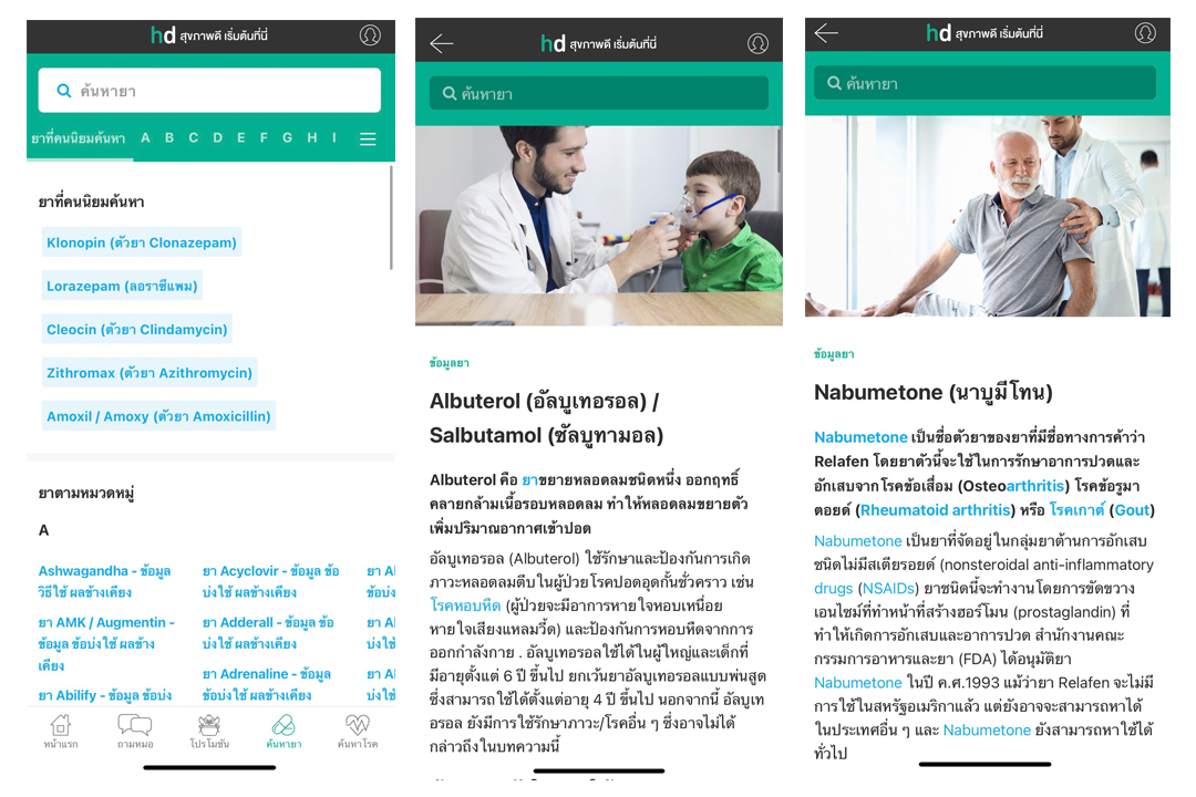 นอกจากนี้ใครที่ชอบศึกษาข้อมูลยาเองในแอปฯนี้เขาก็มีฟีเจอร์ค้นหายาเพื่อให้เราได้รู้ข้อมูลของตัวยาชนิดต่างๆ สามารถค้นหาได้ตามตัวอักษรตั้งแต่ A-Z เลยค่ะ แถมในตัวแอปยังมีคลังความรู้สุขภาพต่างๆ ให้คุณได้เข้าไปอ่านศึกษาข้อมูลรวมทั้งฟีเจอร์เพื่อสุขภาพอีกมากมายที่ช่วยอำนวยความสะดวกให้กับเรา