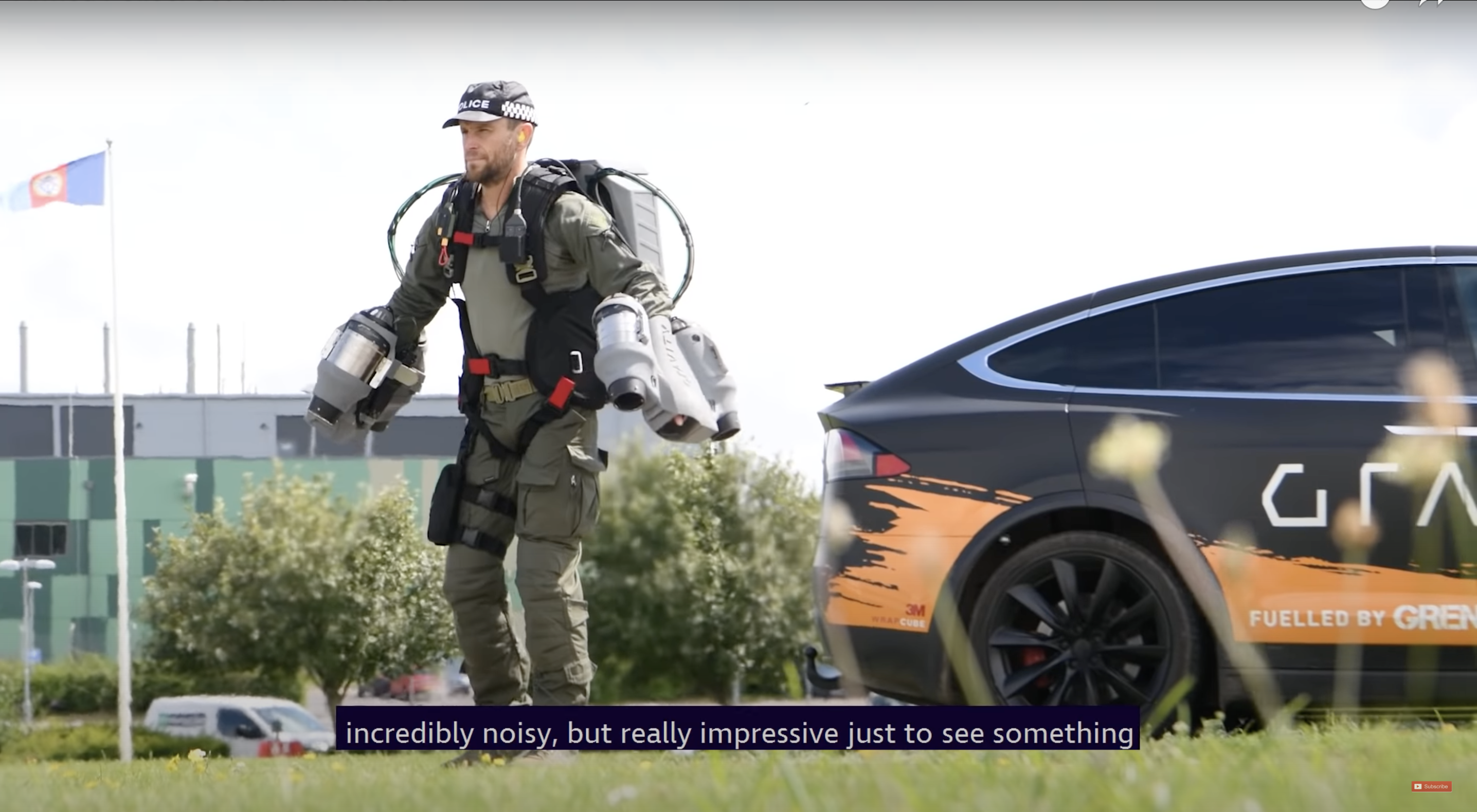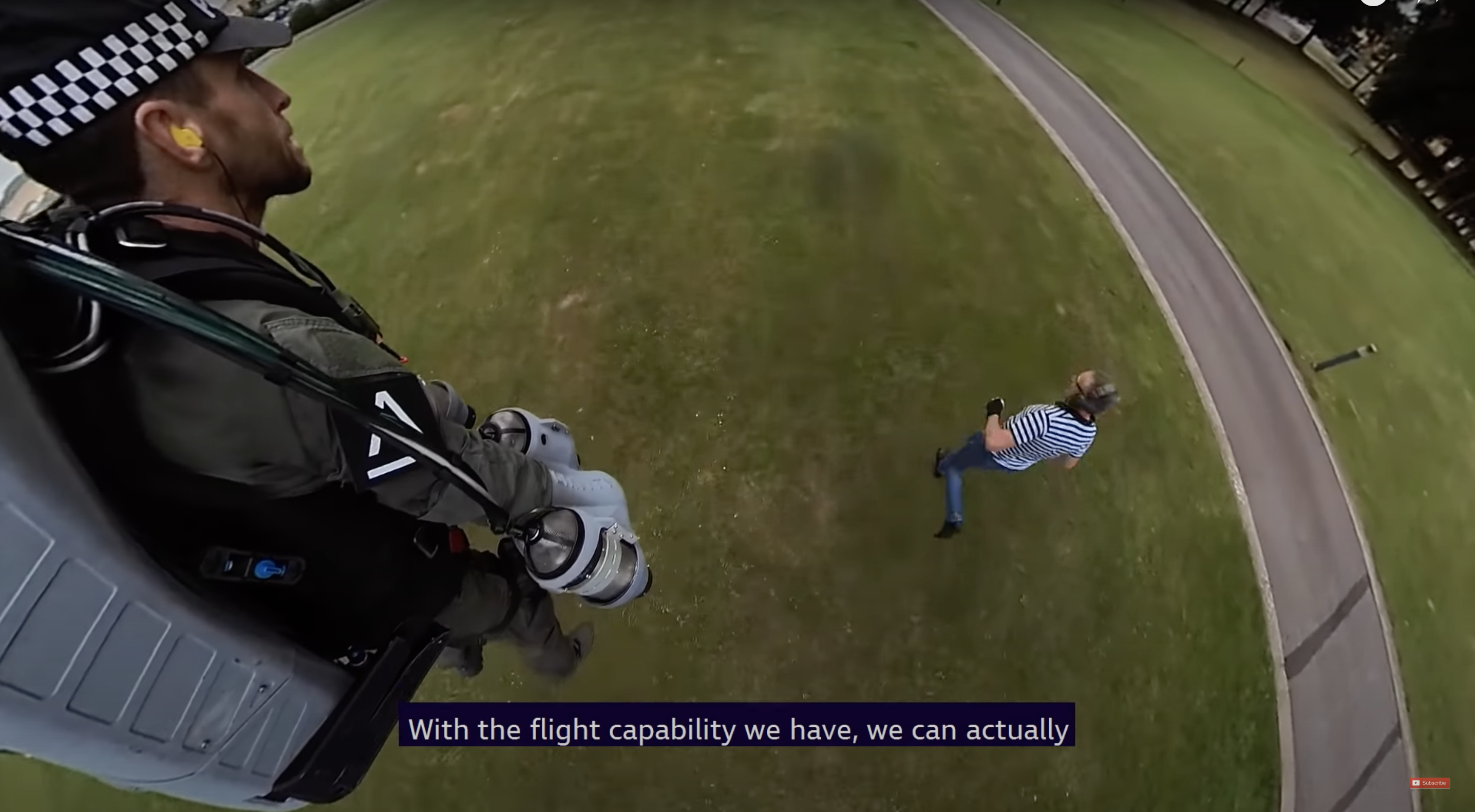 ตำรวจสหราชอาณาจักรทดสอบใส่ชุดเจ็ตสูทสำหรับใช้บินไปจับคนร้าย บินได้เร็วสูงสุด 136 กม./ชม.