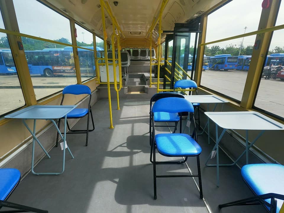 จริงๆ รถฉีดวัคซีนมีทำกันมาสักพักพักแล้วในจีนและอังกฤษ ส่วนกรุงเทพถือเป็นจุดเริ่มต้นแรกของไทย “รถฉีดวัคซีน” ภายนอกจะเป็นรถโดยสารประจำทางทั่วไป แต่ภายในมีอุปกรณ์ทางการแพทย์ที่ครบครัน เช่น เครื่องวัดความดัน เครื่องวัดอุณหภูมิ ตู้เย็นสำหรับเก็บรักษาวัคซีน อุปกรณ์ปฐมพยาบาล เตียงสนาม เครื่องกระตุกหัวใจ (AED) สามารถฉีดวัคซีนได้อย่างปลอดภัยเช่นเดียวกับมาตรฐานในโรงพยาบาล และหลังการฉีดวัคซีนจะฆ่าเชื้อทุกวัน