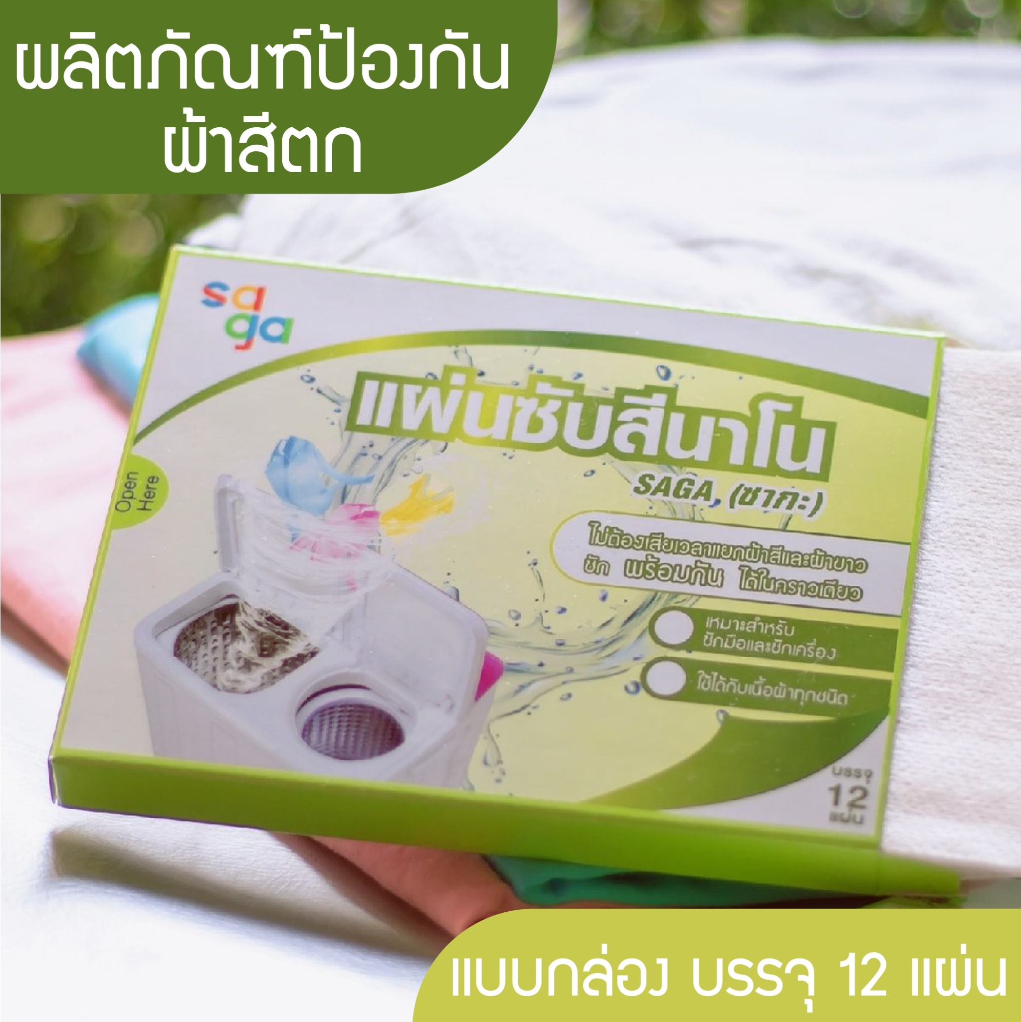 วันนี้เรามีนวัตกรรมที่จะทำให้ปัญหาของทุกคนหมดไป ด้วยผลิตภัณฑ์แผ่นซับสีนาโน แบรนด์ที่เรามานำเสนอวันนี้ มีชื่อว่า ซากะ เพียงแค่เราใส่แผ่นซับลงไปในเครื่องซักผ้า 2-3 แผ่นตามปริมาณของจำนวนเสื้อผ้าที่เราซัก และสีของเสื้อผ้าที่ซักรวมกันเข้ม อ่อนแค่ไหน หลังจากนั้นก็ทำการซักผ้าตามปกติแค่นี้แผ่นซับสีของเราก็จะช่วยดูดซับคราบสกปรก สีผ้าที่จะตกไปยังผ้าตัวอื่น ก็จะไม่มีอีกต่อไป ทำให้ผ้าของเราสะอาดหมดจด ตัวแผ่นไม่เกิดปัญหาเปื่อยยุ่ย ไม่ต้องกลัวจะหลุดติดผ้าค่ะ
