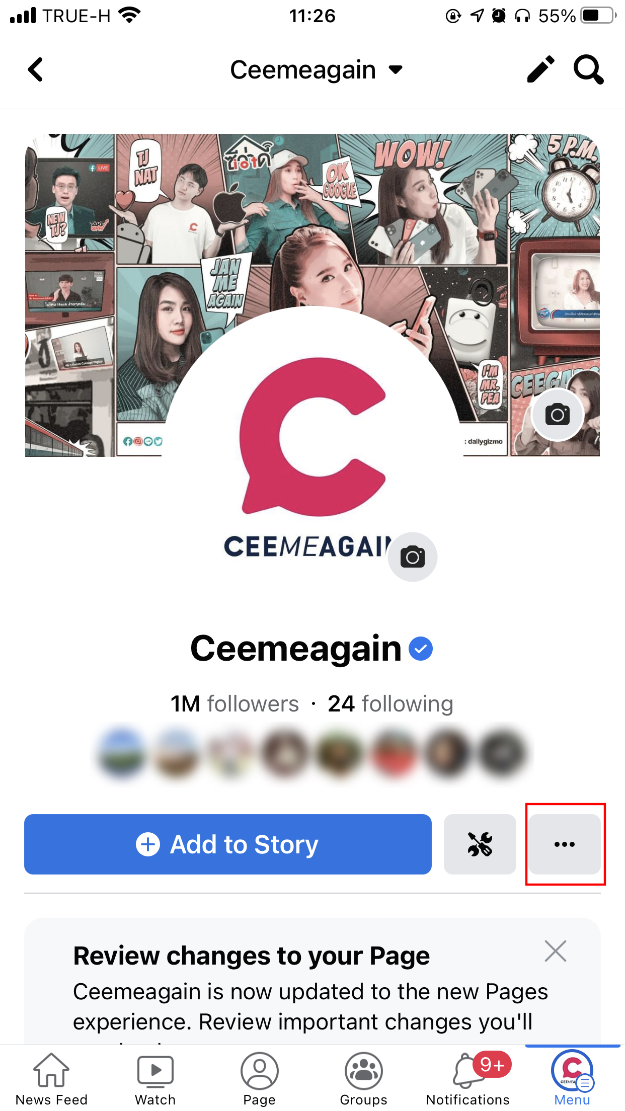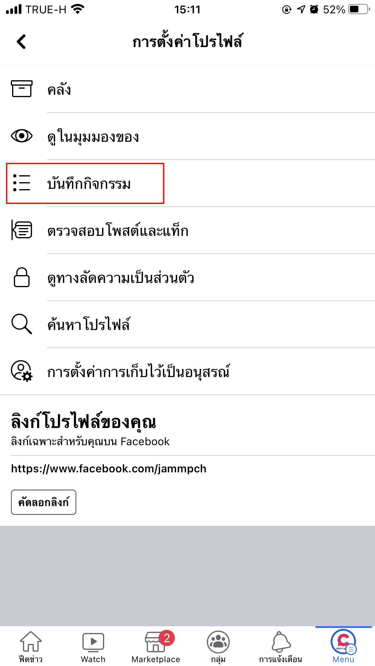 1.ไปทีหน้าโปรไฟล์ของเรา แล้วเลือกที่จุด 3 จุด