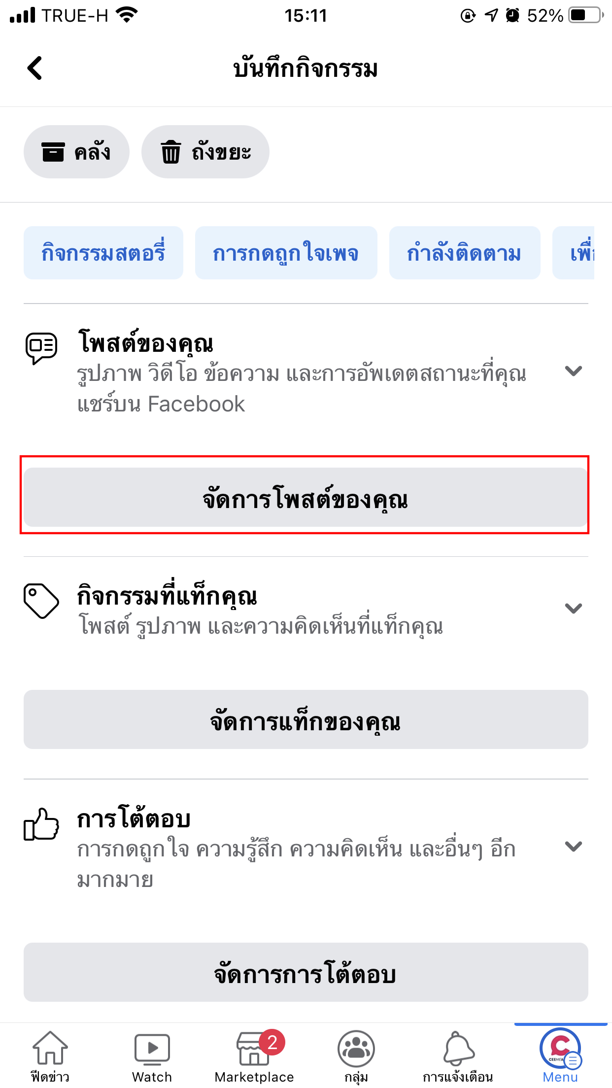 3.แล้วเลือก “จัดการโพสต์ของคุณ”