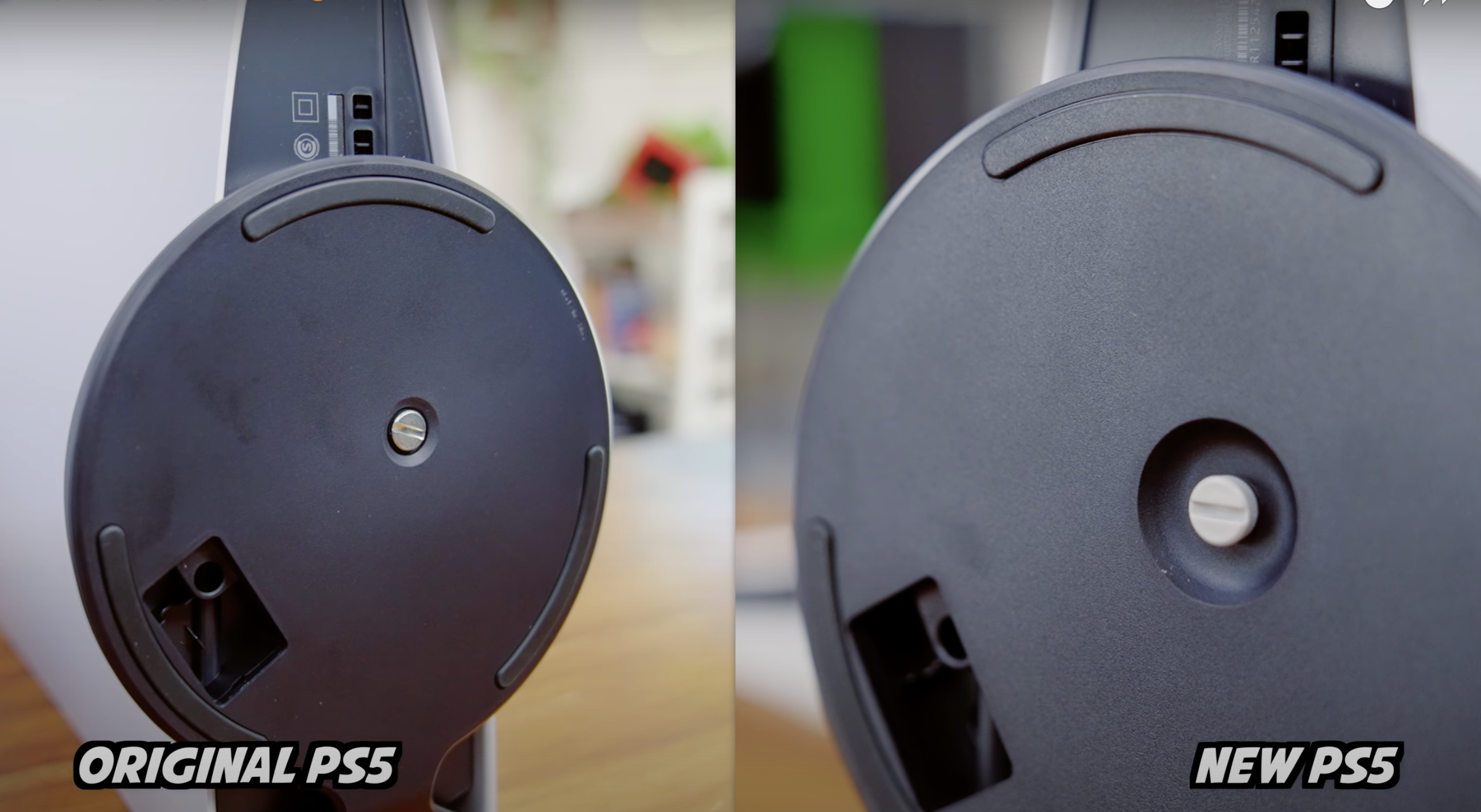 จากที่เริ่มมีรายงานว่ามีผู้ใช้งานพบ PlayStation 5 รุ่นโมเดลใหม่วางขาย ทำให้พบจุดสังเกตที่ทาง Sony ได้เปลี่ยนแปลงในตัวเครื่องรุ่นใหม่นี้ก็คือน็อคขาตั้งตัวเครื่อง ที่เปลี่ยนมาให้สามารถใช้มือหมุนได้ง่ายกว่าจากตัวโมเดลเดิมที่ต้องใช้ไขควงเท่านั้น แต่น้ำนักของตัวเครื่องโมเดลใหม่ล่าสุดนี้กลับลดลงไปเกือบ 300 กรัม
