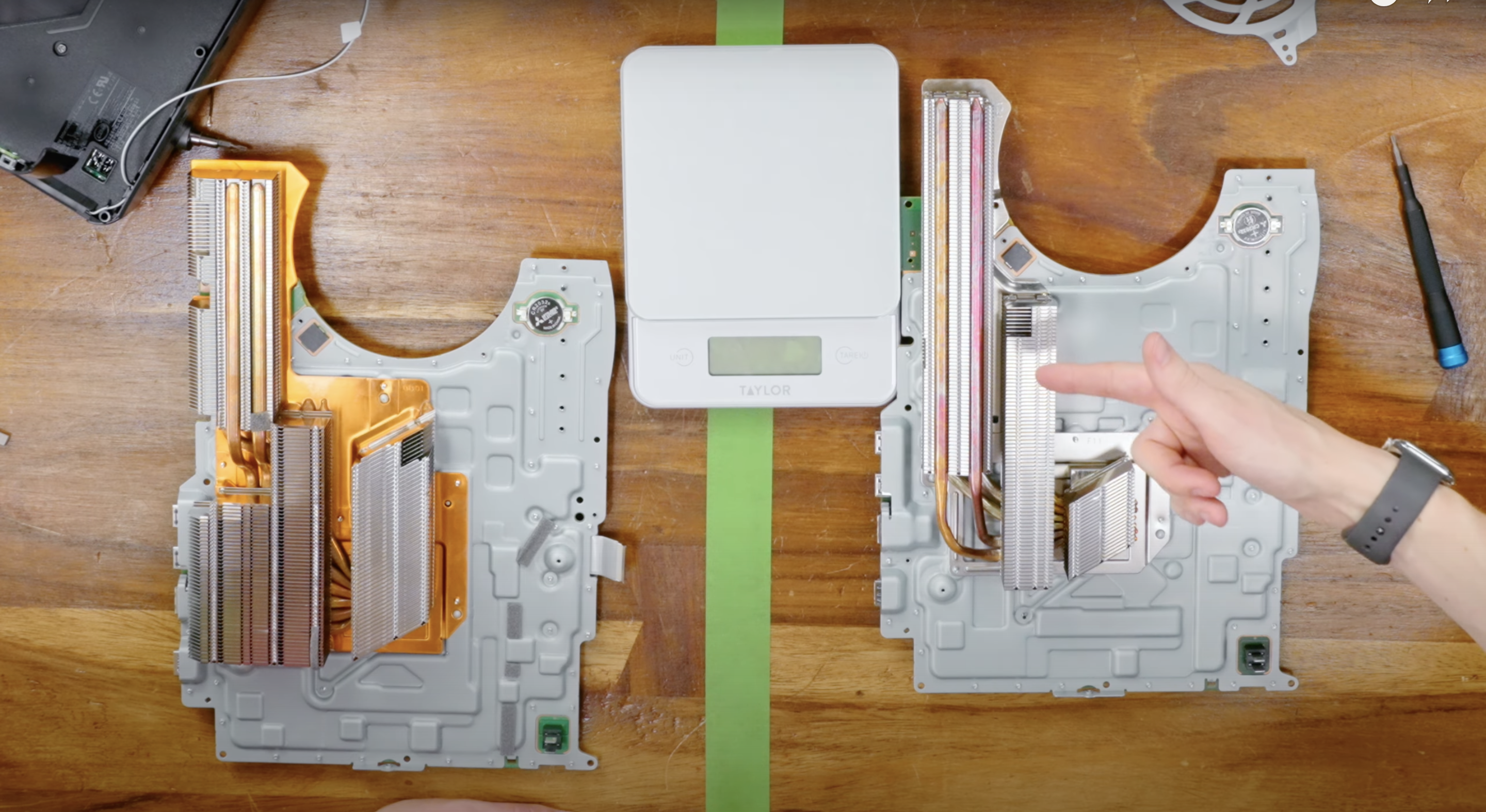 โดยจากการทดลองแล้ว Austin Evans ได้เผยว่า จากการที่ลดขนาด Heatsink ลงไปเกือบ 300 กรัมนั้น ทำให้ตัวเครื่องมีความร้อนที่มากขึ้นกว่ารุ่นโมเดลเก่ากว่า 3-5 องศาเซลเซียส นอกจากนี้ยังมีการเปลี่ยนแปลงพัดลมระบายอากาศให้มีความถี่ของซี่ลดลงจาก 23 ไปอยู่ที่ 17 แต่มีความยาวมากกว่า