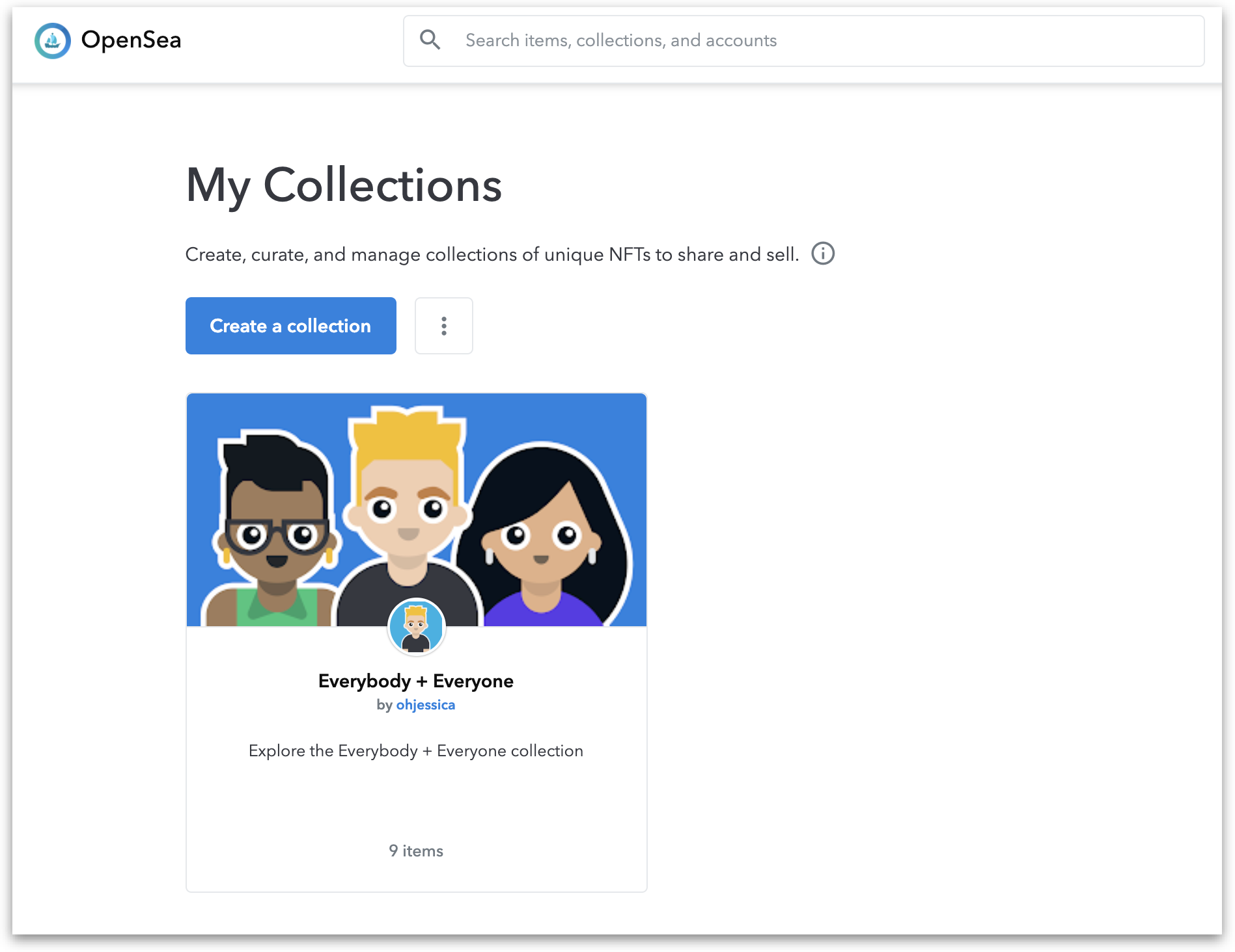 ในฝั่งของเจ้าของผลงานนั้น Opensea เปิดให้ทุกคนสามารถเข้ามาสร้าง NFT ของตัวเองได้โดยไม่มีค่าธรรมเนียม รวมถึงนำ NFT จากที่อื่นมาลงขายก็ได้แต่จะต้องเป็นมาตรฐานเดียวกับที่ทาง Opensea กำหนดไว้