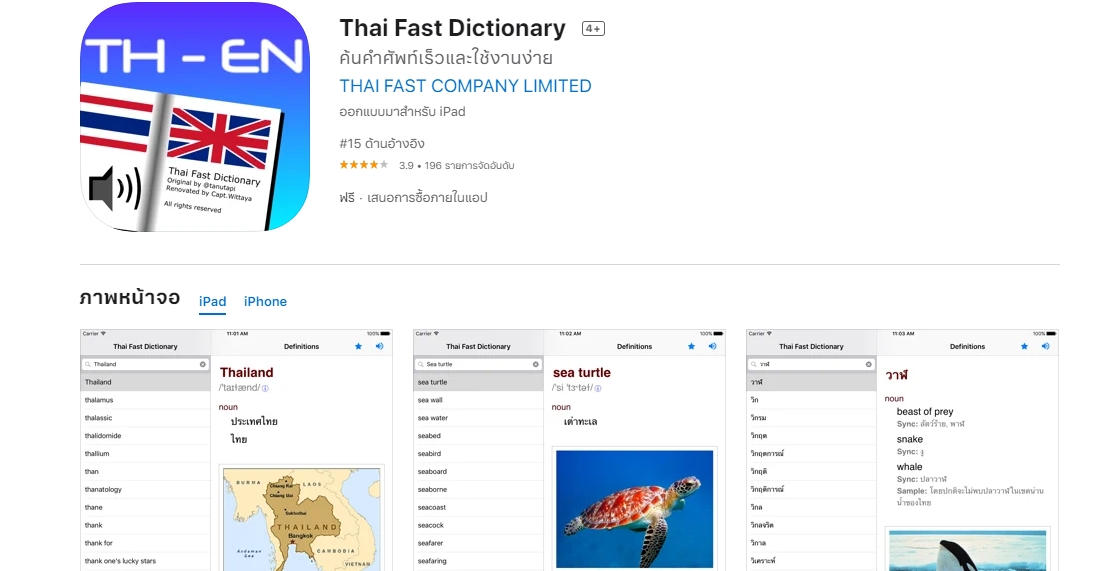 แอปนี้เปรียบเหมือนกับ Dictionary เคลื่อนที่ ช่วยให้คุณสามารถค้นหาความหมาย แปลคำศัพท์ได้อย่างรวดเร็วใช้งานง่ายมากแค่พิมพ์คำภาษาอังกฤษ หรือ ภาษาไทยเข้าไปแอปก็จะจัดกาๆรค้นหาคำแปลมาให้ค่ะ