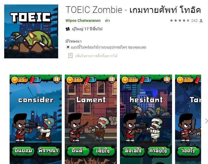 แอปสุดท้าย แอปนี้เหมาะกับเด็กๆที่ต้องการฝึกจำคำศัพท์ให้ได้ โดยจะมาเป็นรูปแบบของเกมซอมบี้ ให้เราเลือกคำศัพท์ที่ถูกต้องก่อนที่ซอมบี้จะมากินเรา นอกจากช่วยให้จำคำศัพท์ได้แล้วยังสนุกเวลาเล่นอีกด้วยใครที่อยากฝึกภาษาก็อย่าลืมโหลดทั้ง 5 แอปนี้ไว้ติดเครื่องกันด้วยนะคะ ใครชอบแอปไหนเป็นพิเศษมาคอมเม้นท์คุยกันได้เลย