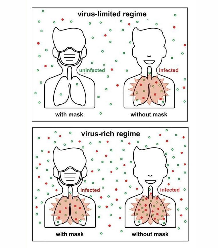 ซึ่งก็ได้มีงานวิจัยเรื่องการสวมหน้ากากอนามัย ถ้าผู้ป่วยไม่ใส่หน้ากากและคนที่ยังไม่ติดเชื้อใส่หน้ากากอนามัยเดินสวนกันในที่เปิดโล่งหรืออยู่ในสถานที่ทั่วๆไปที่ไวรัสโควิดแพร่กระจายในอากาศไม่มากนัก การใส่หน้ากากอนามัยนั้นช่วยในการป้องกันไวรัสได้ดีทีเดียว