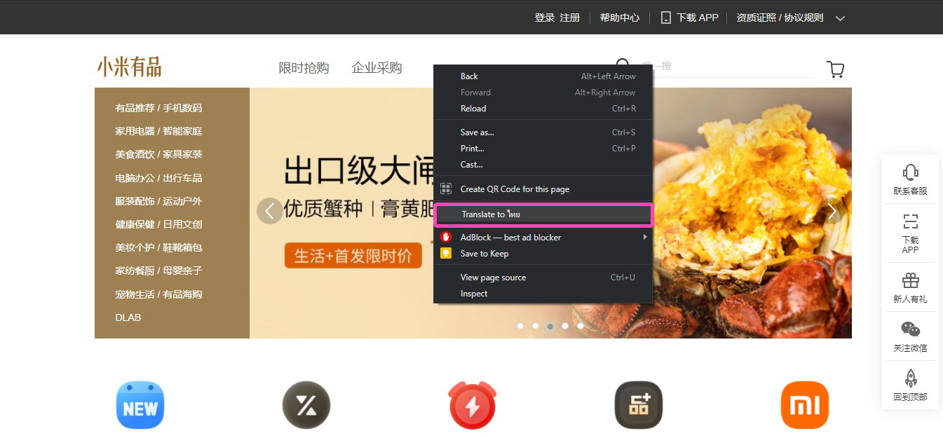 2. คลิปขวาบนพื้นที่ว่างในเว็บ จากนั้นเลือก Translate to ไทย
