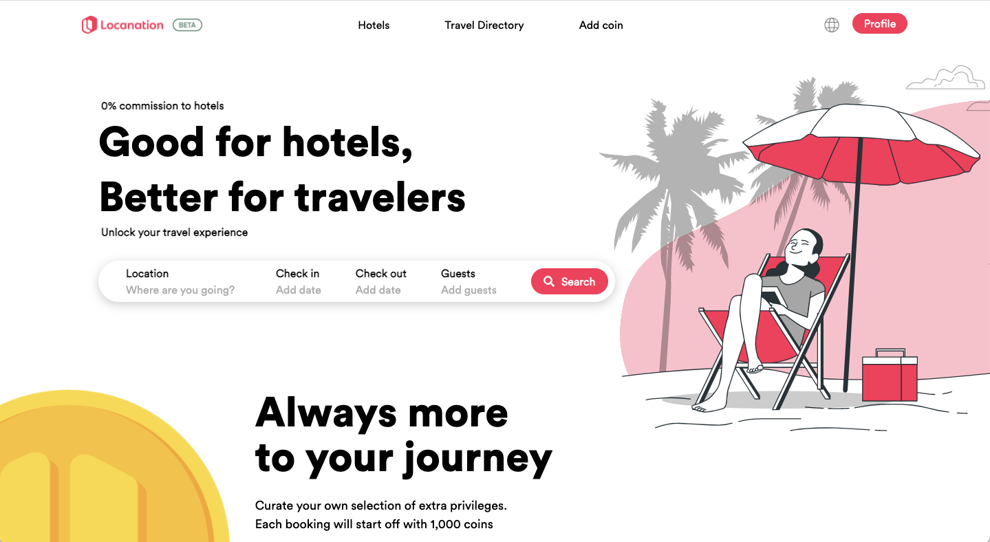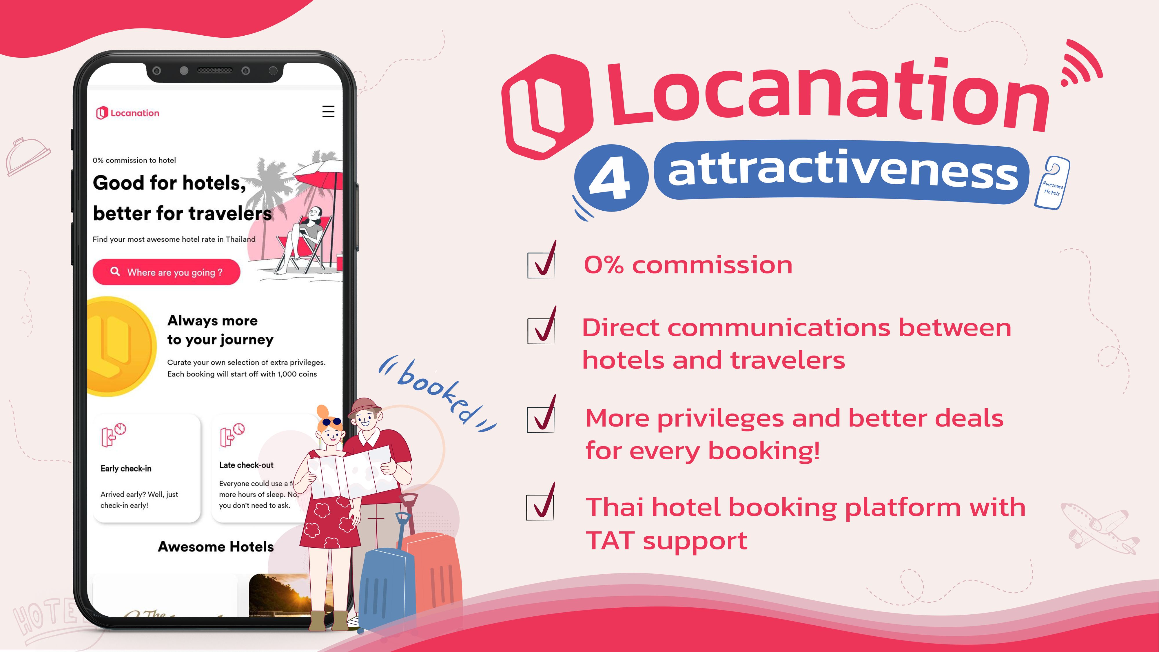 จุดเด่น คือ เมื่อผู้ประกอบการโรงแรมที่เข้าร่วมแพลตฟอร์ม Locanation ไม่ต้องเสียค่าคอมมิชชัน จึงทำให้เปรียบเสมือนช่องทางการจองตรงของโรงแรม สามารถสื่อสารโดยตรงกับนักท่องเที่ยว พวกเขาสามารถนำรายได้ที่เคยสูญเสียไปในจุดนั้นมาแปรเปลี่ยนเป็นสิทธิประโยชน์ที่ตรงกับความต้องการของผู้เข้าพักเพิ่มมากขึ้น เช่น บริการรถรับส่งระหว่างโรงแรมไปยังสนามบิน หรือฟรีมินิบาร์ เป็นต้น ซึ่งการที่โรงแรมและลูกค้าสามารถสื่อสารกันโดยตรง ทั้งในรูปแบบของโพสต์และแชทส่วนตัว จะส่งผลให้โรงแรมสามารถอัพเดทโปรโมชันและดีลห้องพักได้แบบเรียลไทม์ และจะช่วยเพิ่มประสิทธิภาพการเข้าถึงนักท่องเที่ยวของโรงแรม
