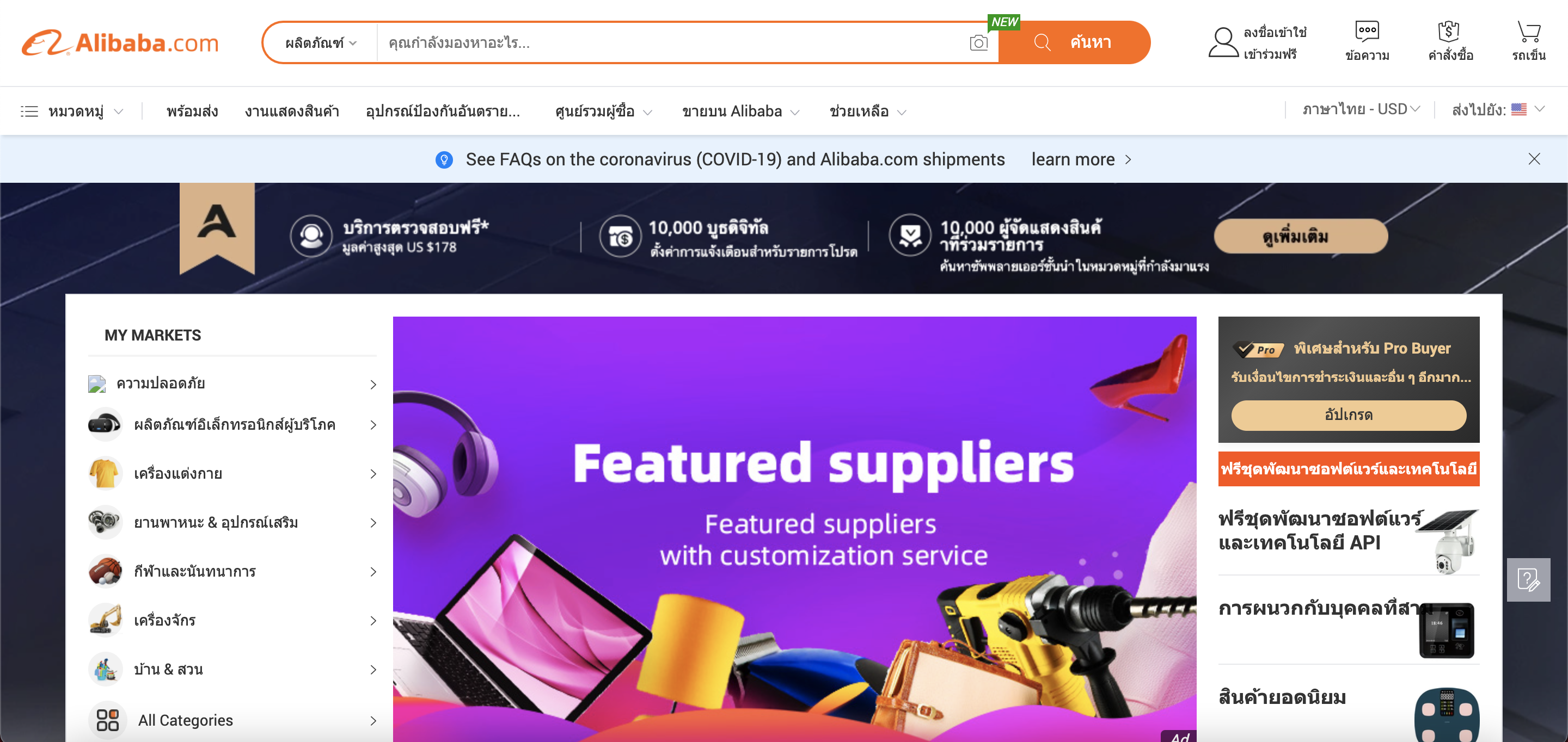 Alibaba.com แพลตฟอร์มซื้อขายสินค้าแบบธุรกิจต่อธุรกิจ (B2B) ระดับโลกของอาลีบาบา กรุ๊ป ได้ยกระดับบริการด้วยการเพิ่มฟีเจอร์ภาษาไทย เพื่อให้ผู้ประกอบการไทยสามารถบริหารจัดการธุรกิจส่งออกออนไลน์และเข้าถึงตลาดโลกได้ง่ายขึ้น รวมถึงอำนวยความสะดวกให้กับผู้ประกอบการไทยที่ยังลังเลในการขยายตลาดไปต่างประเทศ เนื่องจากอุปสรรคด้านภาษา