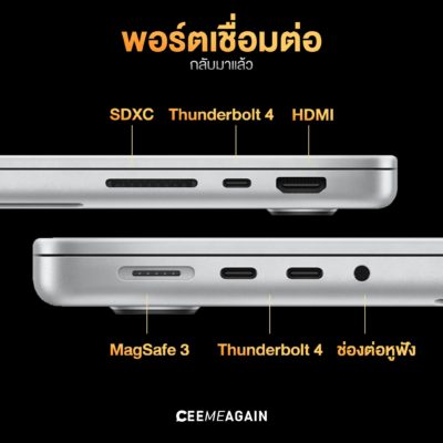 นอกจากรอยบากแล้ว MacBook Pro ใหม่ ยังมีส่วนอื่นที่อัปเกรดมาเพิ่มด้วยอย่าง พอร์ทเชื่อมต่อต่างๆ เช่น HDMI และช่องเสียบการ์ด SD ที่ชาร์จ MagSafe จอแสดงผล Mini- LED ProMotion และชิป M1 Pro หรือ M1 Max ซึ่งเป็นชิปซิลิคอนรุ่นแรกของ Apple ที่ออกแบบมาสำหรับมืออาชีพ ผู้บริโภค