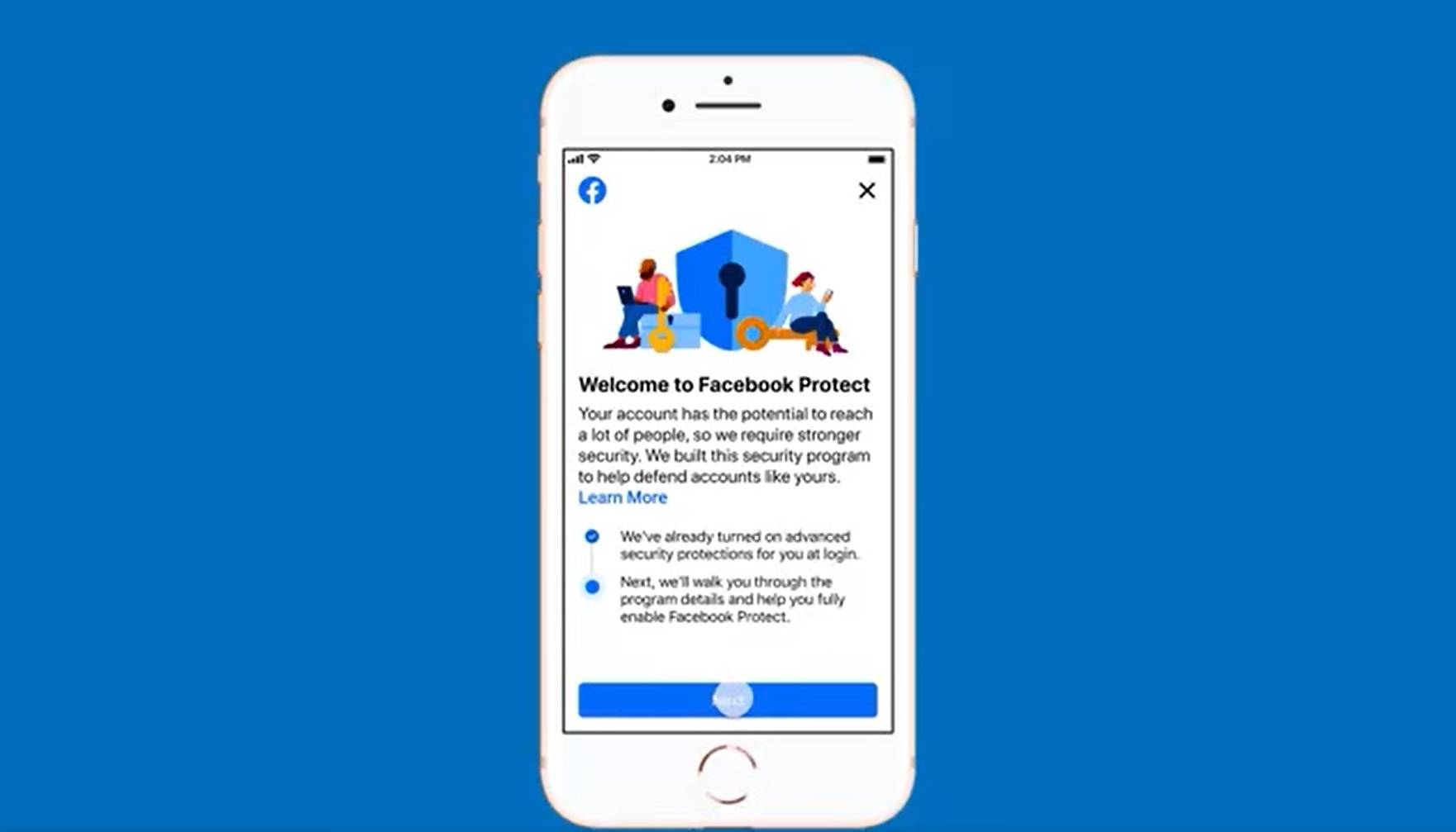Facebook Protect คือฟีเจอร์ด้านของ Facebook เพื่อช่วยปกป้องความปลอดภัยของผู้ใช้และเพจ Facebook ที่ดูแลอยู่จากภัยคุกคามบนออนไลน์ โดยเริ่มเปิดใช้งานก่อนในสหรัฐอเมริกาเป็นแบบสมัครใจ เน้นไปที่นักการเมืองและหน่วยงานด้านการเลือกตั้ง เมื่อเข้าร่วมโครงการนี้ก็จะมีการเปิดระบบยืนยันตัวตนสองชั้น (2FA) และทาง Facebook ก็จะมีการช่วยดูแลพฤติกรรมการใช้งานที่ผิดปกติที่เกิดจากการแฮกบัญชี
