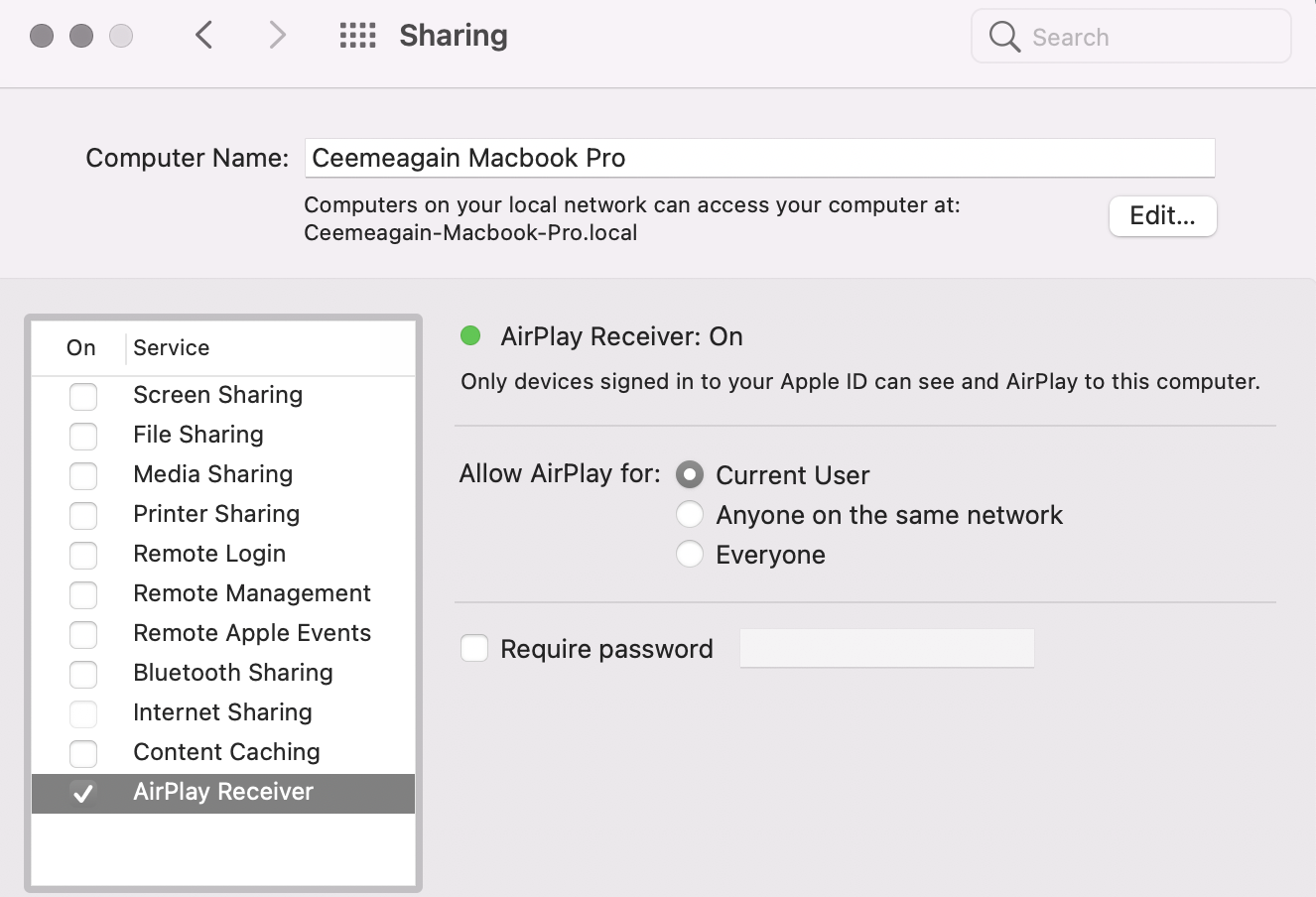 ค่าเริ่มต้นของ AirPlay to Mac นั้นจะต้องเป็นเครื่องของผู้ใช้ Apple ID เดียวกัน แต่ถ้าอยากตั้งค่าให้ผู้ใช้คนอื่นสามารถใช้ AirPlay to Mac มายังเครื่อง Mac ของเราต้องไปตั้งค่าเพิ่ม