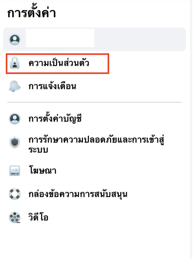 3.แล้วเลือก ความเป็นส่วนตัว