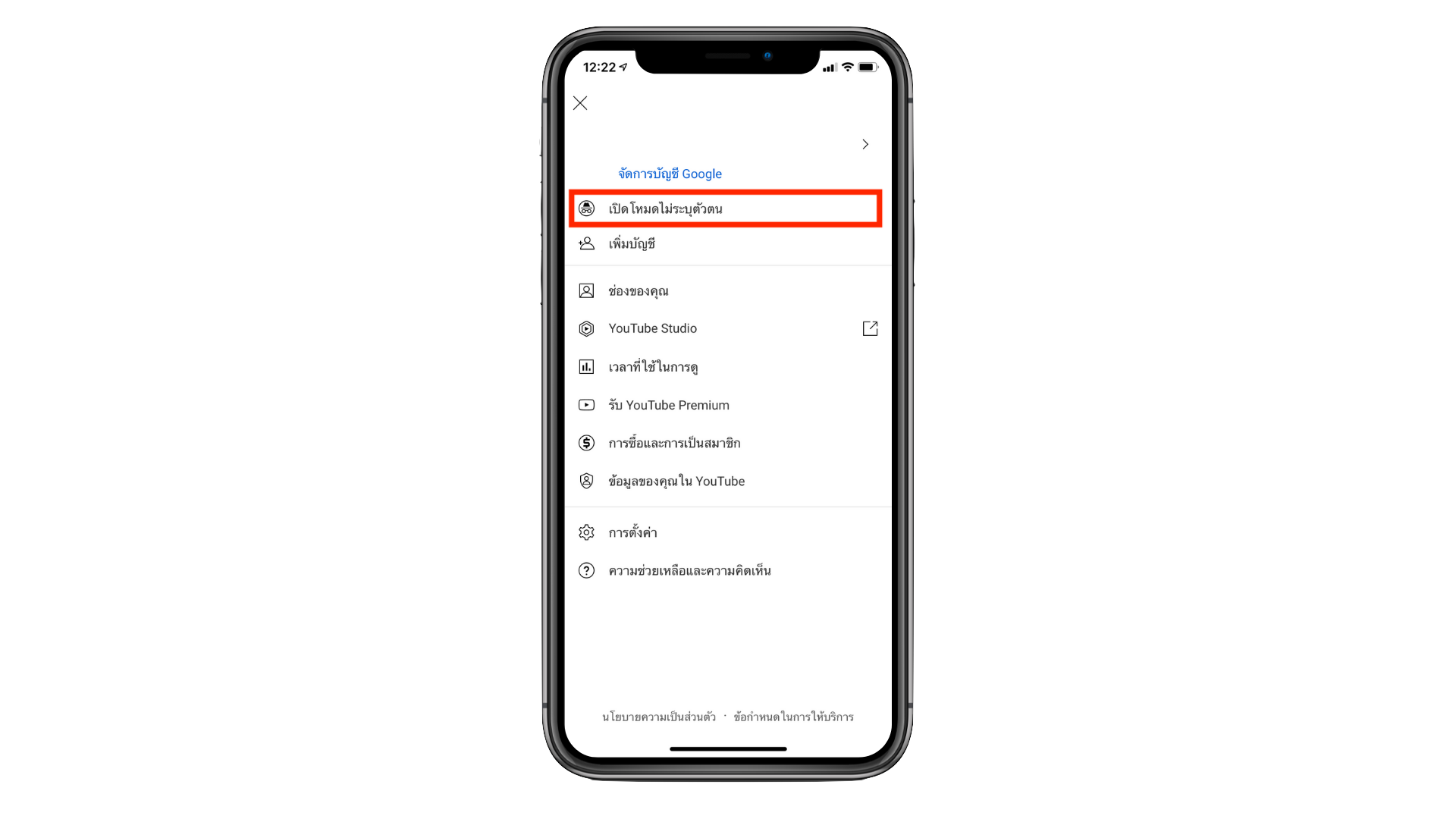 2. จากนั้นกด ‘เปิดโหมดไม่ระบุตัวตน’