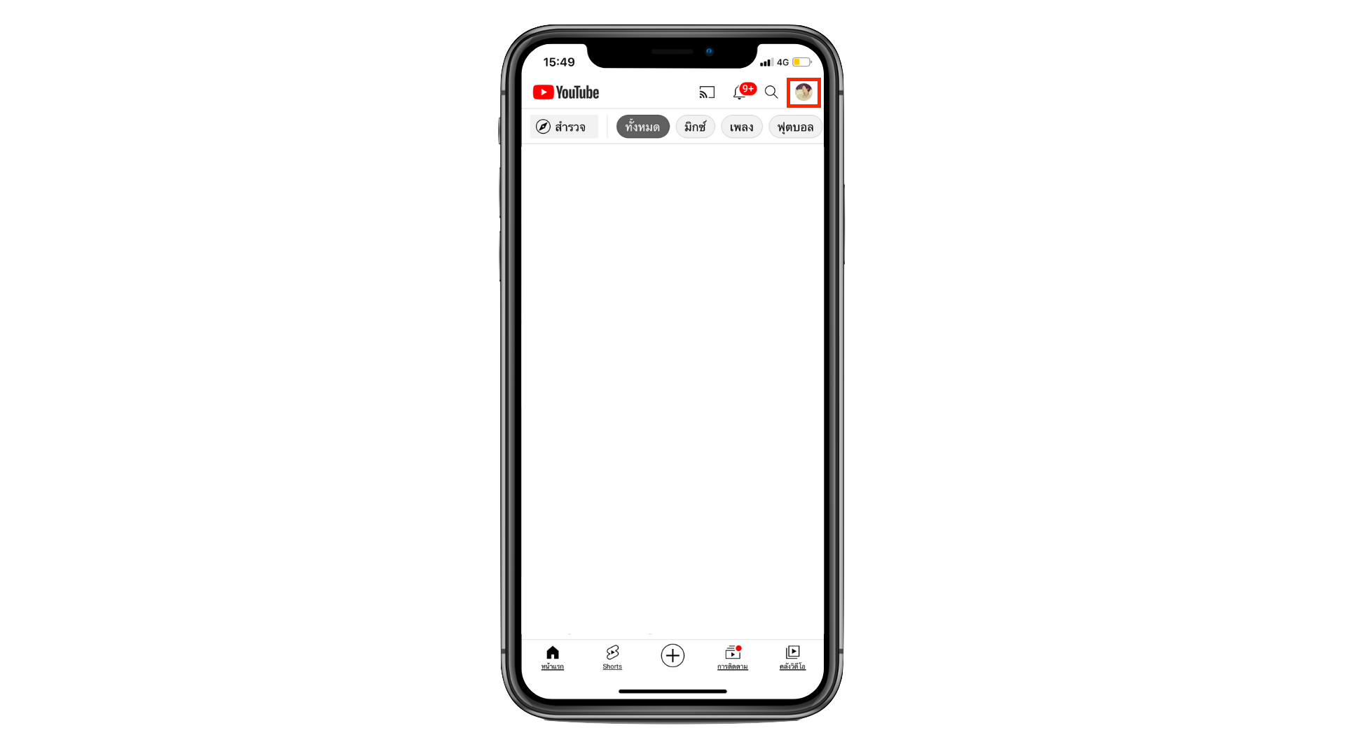 1.ไปที่แอปพลิเคชัน YouTube แล้วกดไปที่รูปโปรไฟล์ของเรา