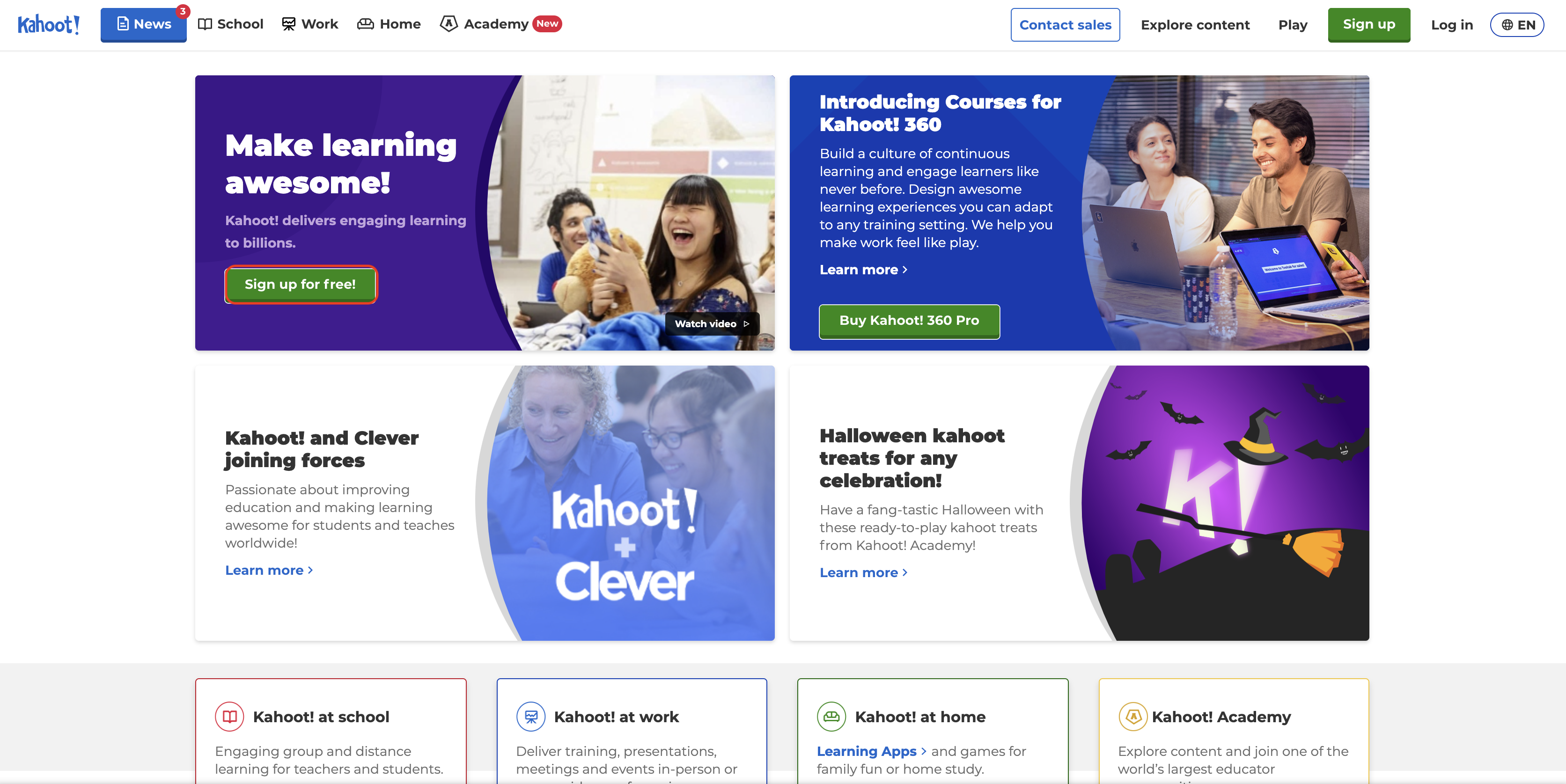 1.เข้าไปที่ https://kahoot.com/ เลือกปุ่ม Sign up for free