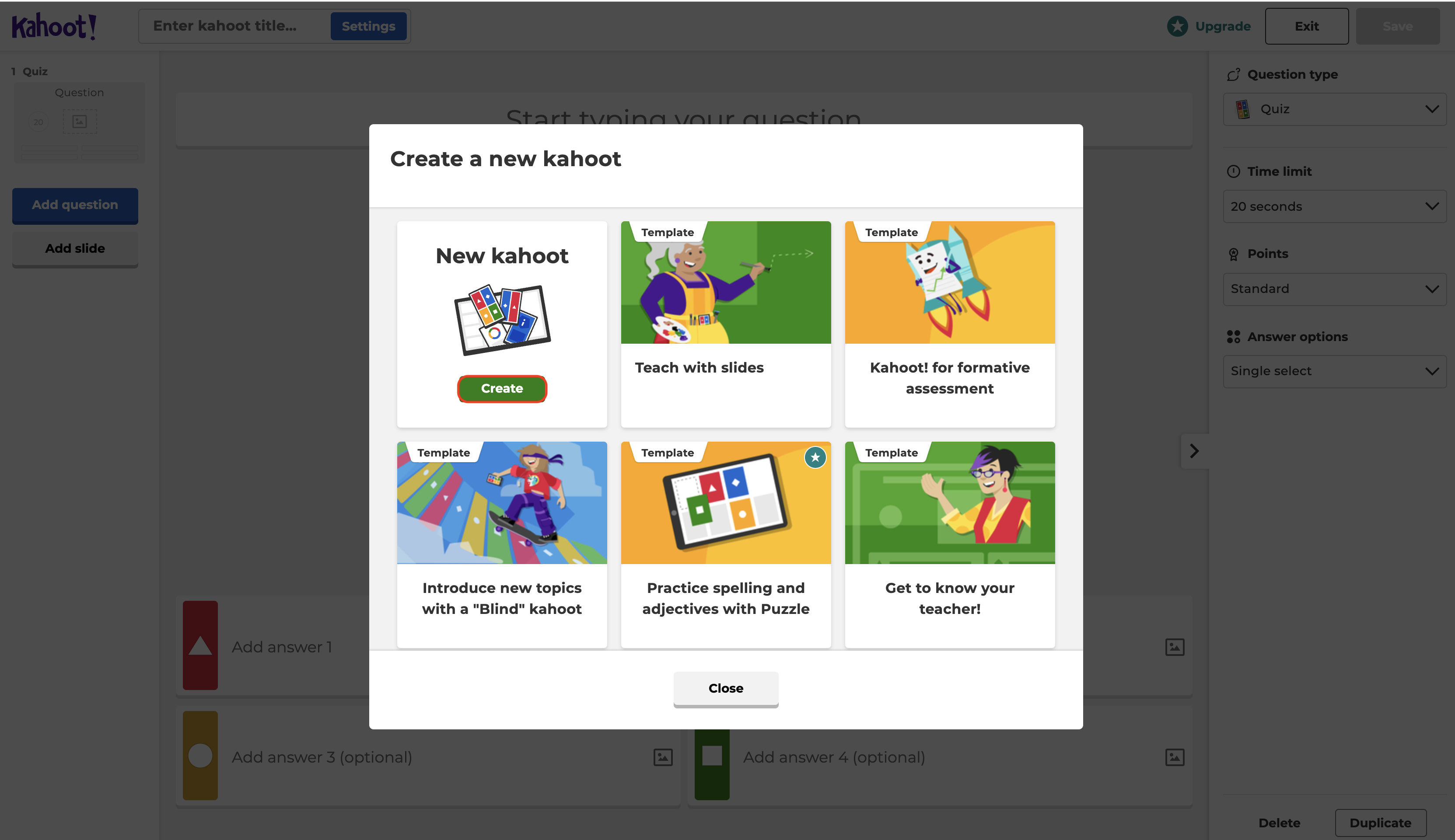 4.เลือก Create เพื่อเริ่มสร้างแบบทดสอบ