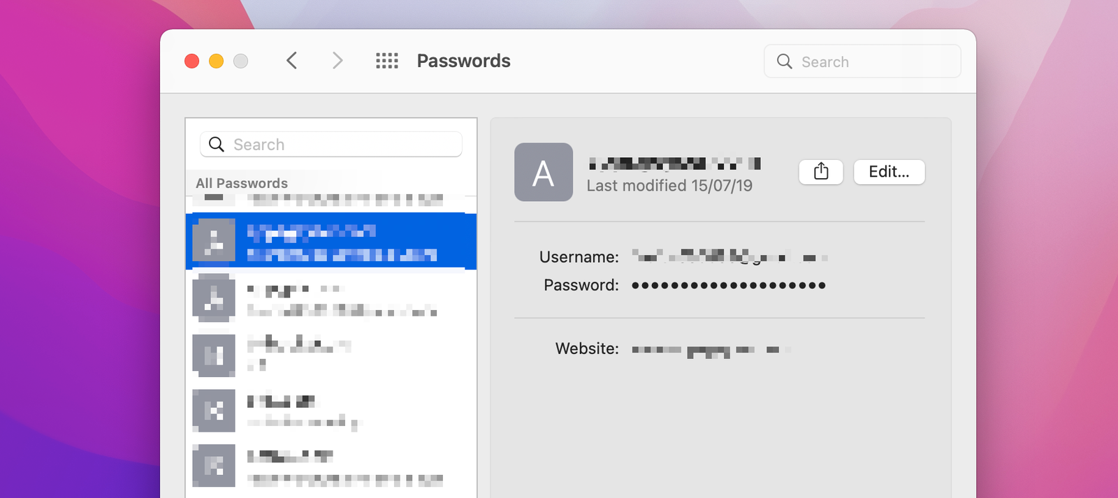 ให้เราเข้าไปที่ System Preferences > Passwords เราจะสามารถดูและแก้ไขรหัสผ่านที่เซฟไว้ รวมถึงตั้งค่าการยืนยันตัวตนสองชั้น (two-factor authentication) เพื่อป้องกันบัญชีของเราให้ปลอดภัยมากขึ้น รวมถึงสามารถ import หรือ export รหัสผ่านทั้งหมดในคลิกเดียว