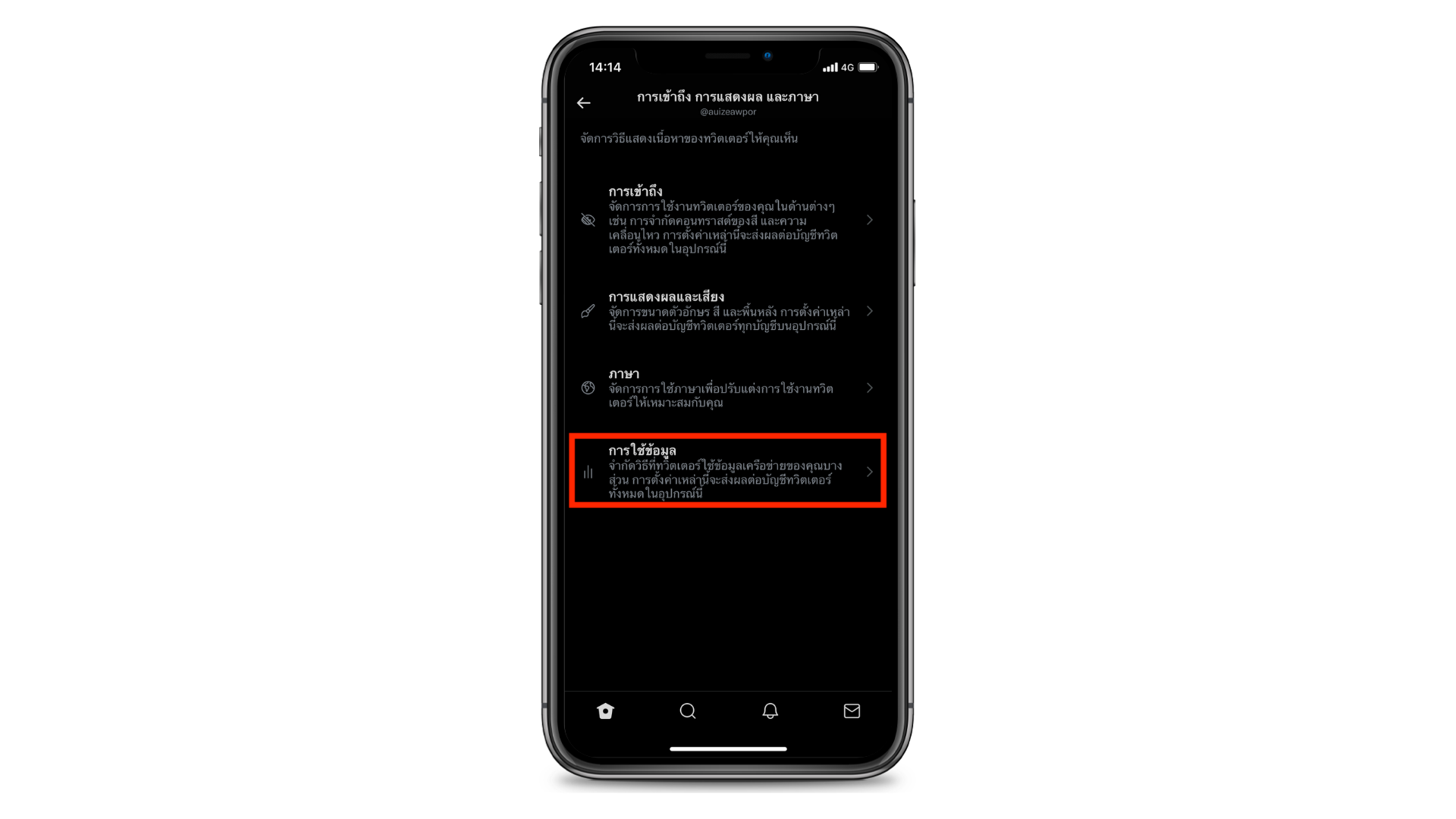 3.จากนั้นไปที่ “การใช้ข้อมูล”