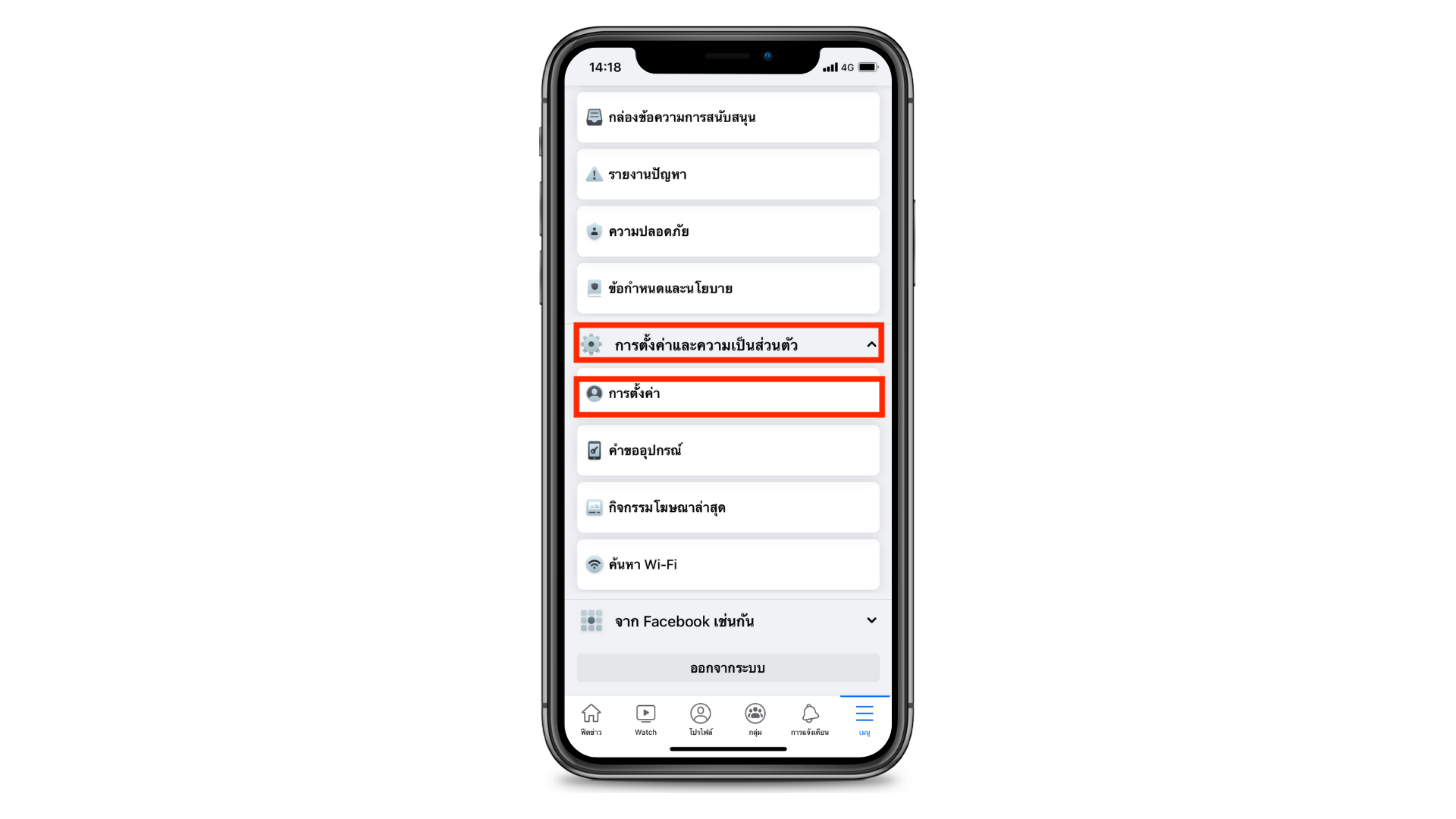 1.กดที่แถบเมนู ไปที่ “การตั้งค่าและความเป็นส่วนตัว” > การตั้งค่า