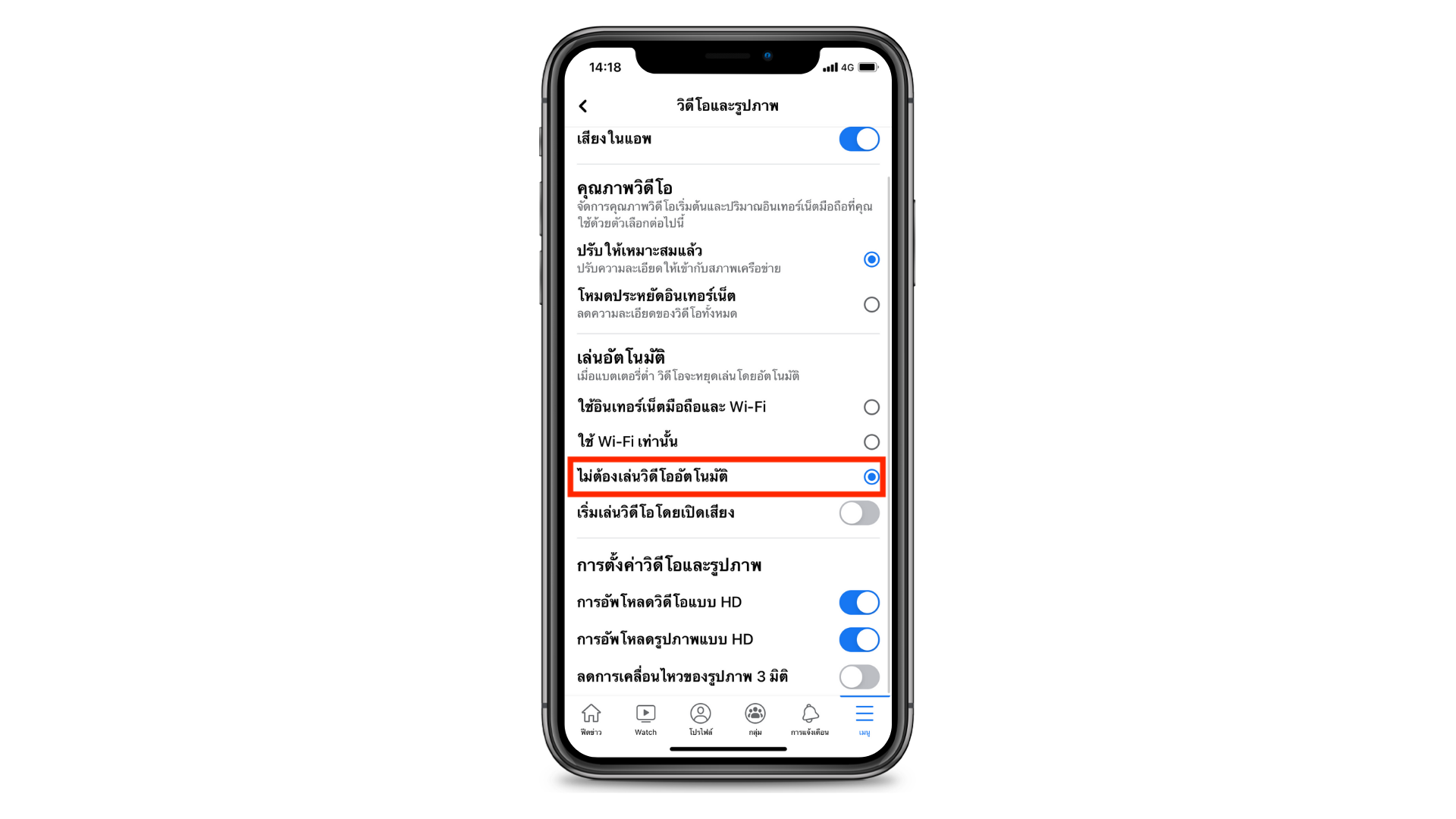 4.กดเลือก “การเล่นวีดีโออัตโนมัติ”