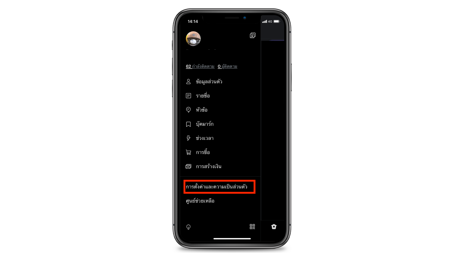 1.ไปที่แถบเมนู แล้วเลือก “การตั้งค่าและความเป็นส่วนตัว”