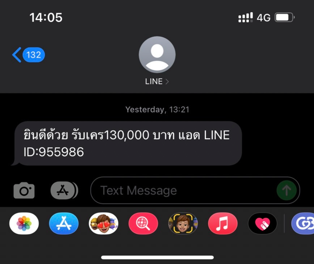 ช่วงนี้ระบาดหนักจริงๆค่ะกับ SMS สแปม ปลอมเป็นหน่วยงานต่างๆ ไม่ว่าสถาบันการเงิน ไปรษณีย์ไทย ล่าสุดค่ะ ปลอมตัวเป็น ไลน์ (LINE) ส่ง SMS อ้างว่าเป็นผู้โชคดีได้เครดิตเงินแสน พร้อมให้แอดไลน์เพื่อรับสิทธิ์