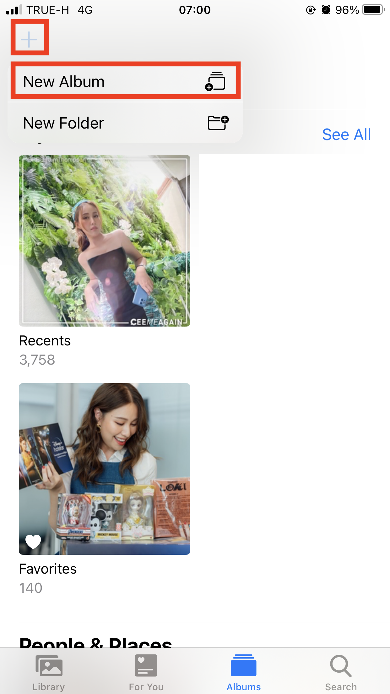 1.เข้าไปที่อัลบั้มรูปแล้วกดเครื่องหมายบวก จากนั้นเลือก New Album