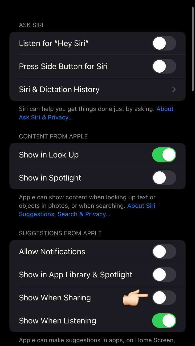3. ปิดตัวเลือก Show When Sharing
