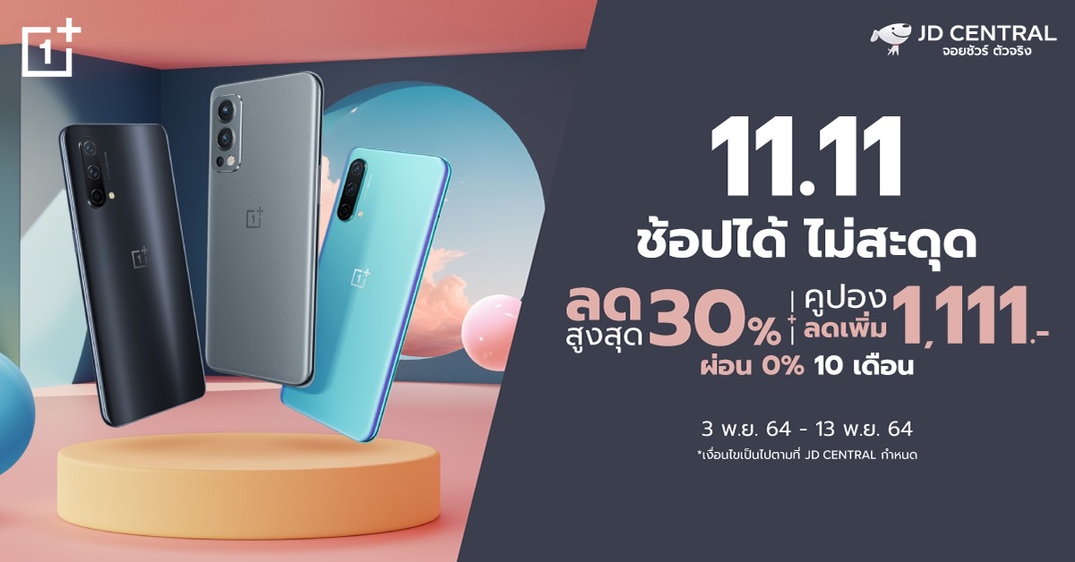 OnePlus 11.11 BIG SALE ลดสูงสุด 80% พร้อมโค้ดลดเพิ่มสูงสุด 1,111.- ส่งฟรีเมื่อช้อปขั้นต่ำ 1,111.- พร้อมผ่อน 0% นาน 10 เดือน