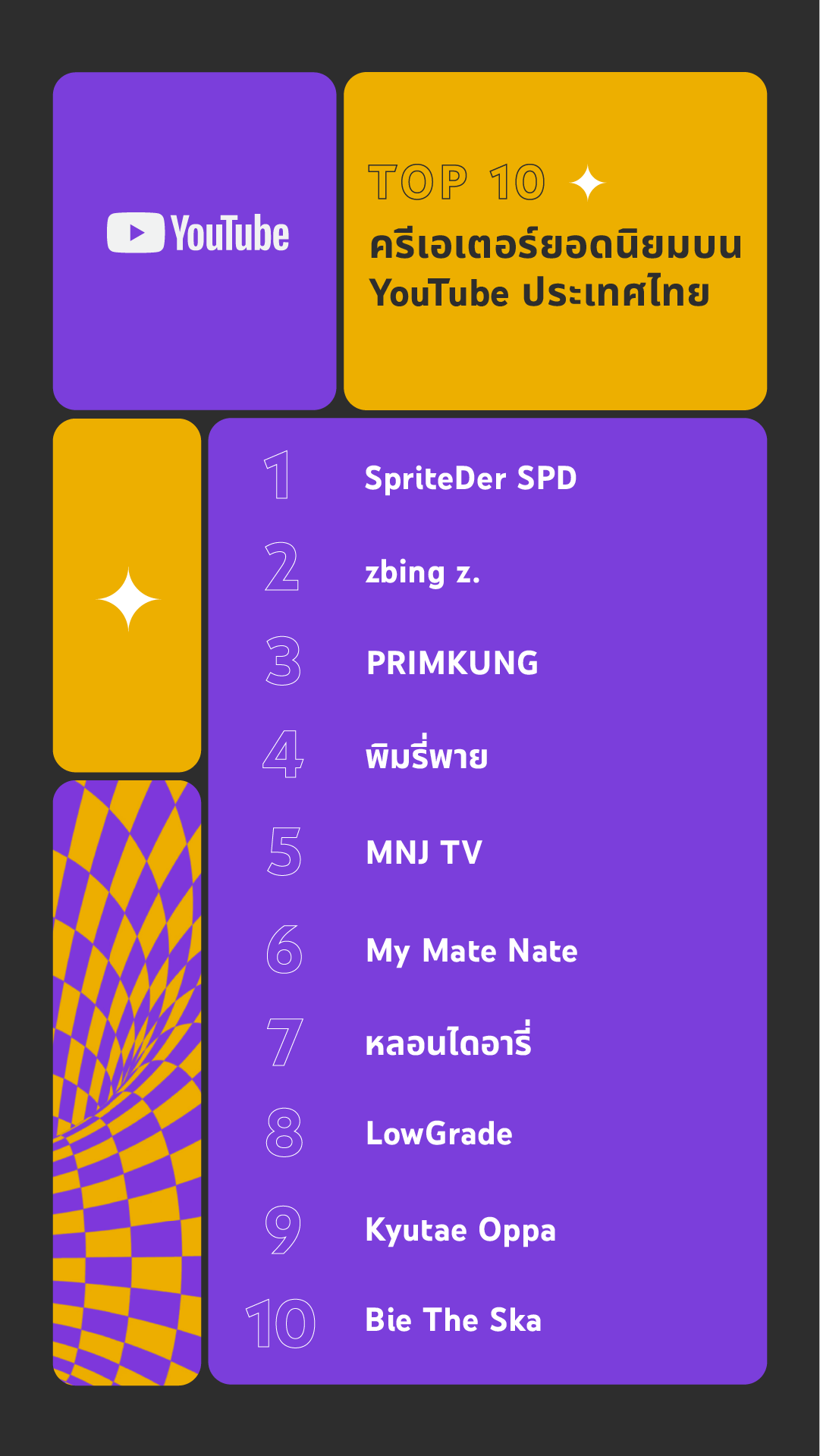 10 อันดับครีเอเตอร์ดาวรุ่งบน YouTube ประเทศไทย (จัดอันดับในเดือนพฤศจิกายน 2564)