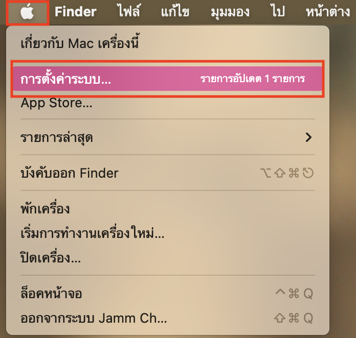 1. ไปที่สัญลักษณ์ Apple จากนั้นเลือก การตั้งค่าระบบ