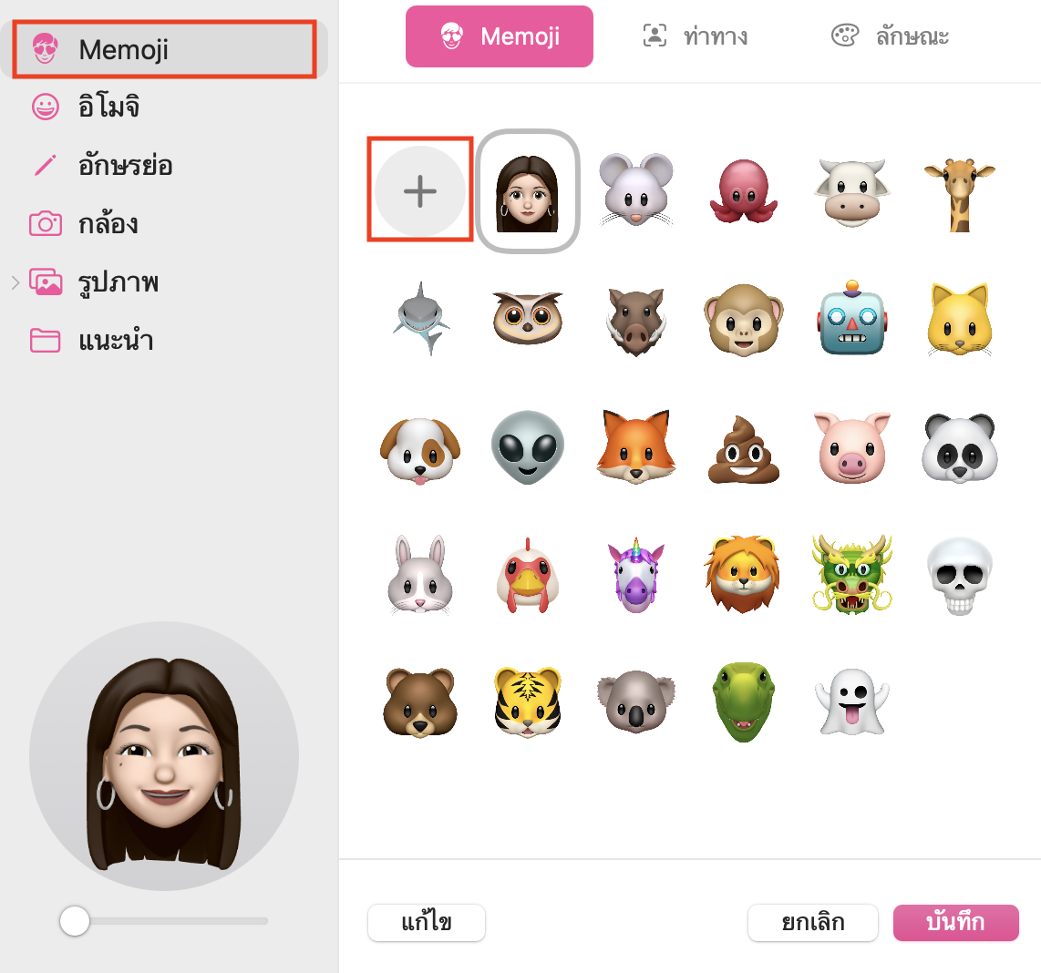 4. เลือก Memoji แล้วกดบวก เพื่อสร้างตัวละครของเรา