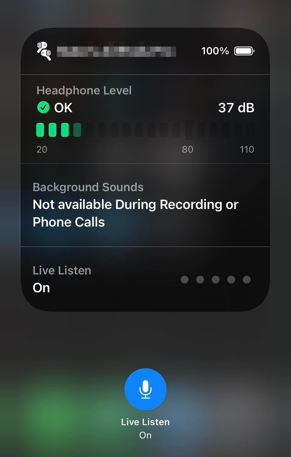 แต่ด้วยประสิทธิภาพ Bluetooth ของ AirPods ที่ส่งสัญาณได้แรงและไกลทะลุกำแพงห้องได้หลายห้อง ฟีเจอร์นี้จึงกลายมาใช้เป็นเครื่องช่วยฟังได้แม้ตัวเราไม่อยู่ตรงนั้น โดยที่ฟีเจอร์นี้ยังใช้งานได้แม้เราจะกดล็อคหน้าจอได้อีกด้วย แต่ฟีเจอร์นี้ให้เราฟังได้เฉยๆนะ ไม่สามารถใช้อัดเสียงได้