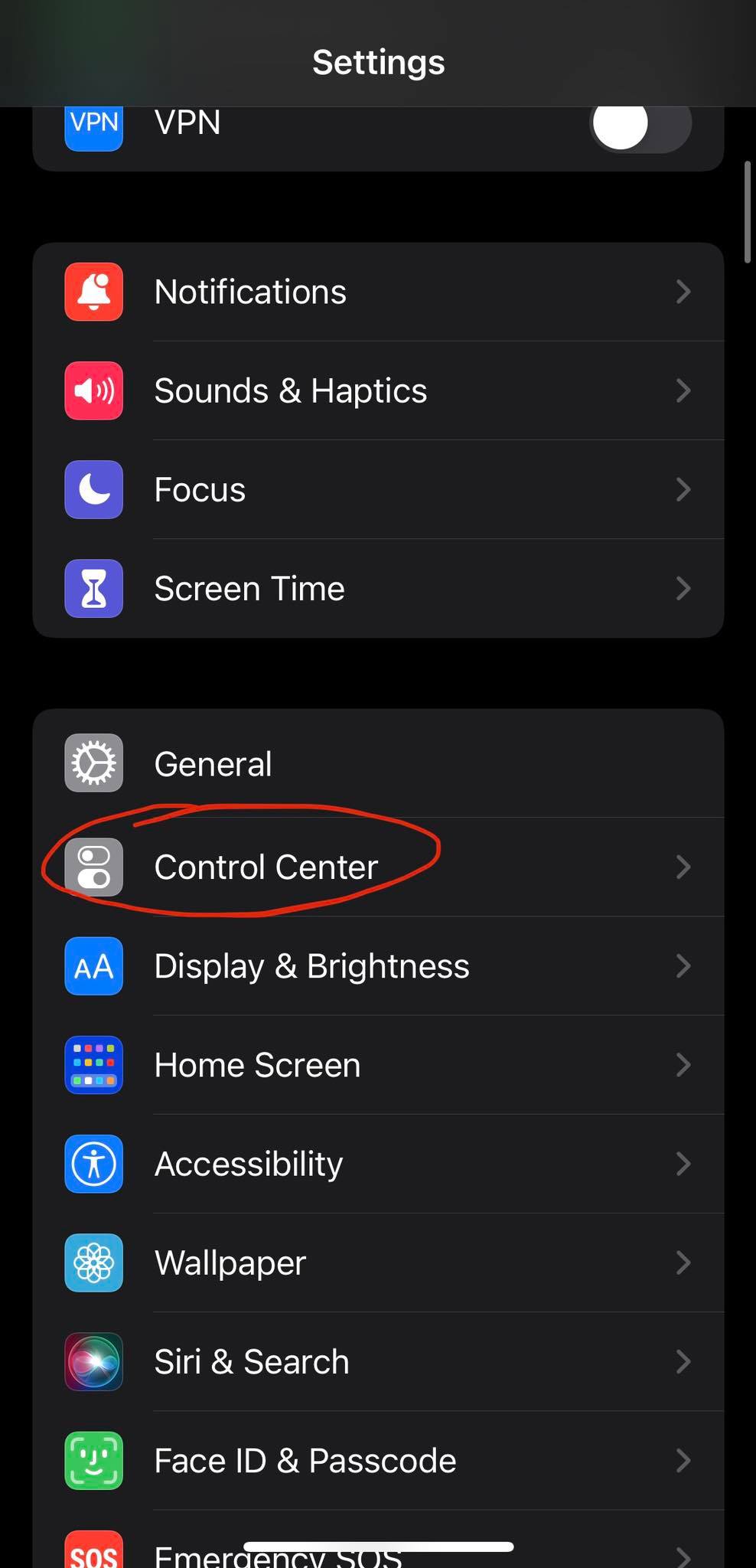 • แล้วไปที่ Control Center (ศูนย์ควบคุม)