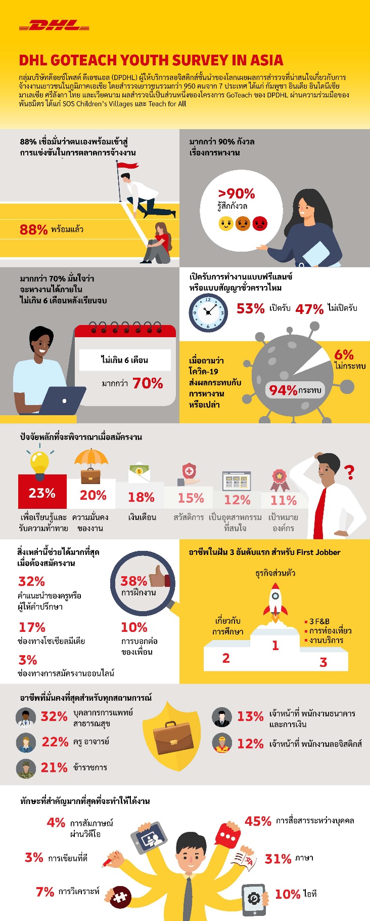 โดยบริษัทฯ ได้ทำการสำรวจความคิดเห็นทางออนไลน์เป็นเวลา 3 สัปดาห์ และได้รวบรวมคำตอบจากเยาวชนอายุ 15 ปีขึ้นไปกว่า 950 คนจาก 7 ประเทศ ได้แก่ ไทย กัมพูชา อินเดีย อินโดนีเซีย มาเลเซีย ศรีลังกา และเวียดนาม การศึกษาครั้งนี้เป็นส่วนหนึ่งของโครงการ GoTeach ของกลุ่มบริษัท ดอยช์ โพสต์ ดีเอชแอล โดยได้รับการสนับสนุนจากเครือข่ายพันธมิตรระดับโลกเช่น มูลนิธิเด็กโสสะ (SOS Children’s Villages) และ Teach For All