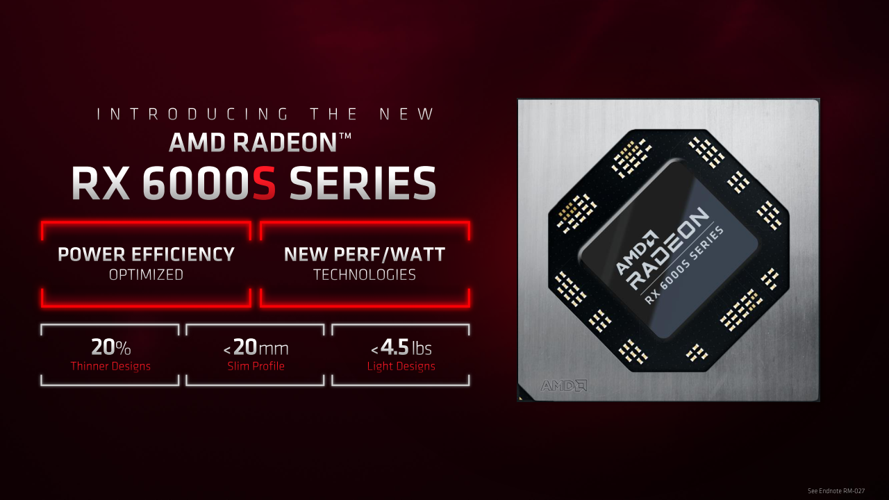 CEO AMD “Lisa Su” เปิดตัว การ์ดจอ AMD รุ่นใหม่ โดยไฮไลท์จะอยู่ที่รุ่น การ์ดจอ AMD Redeon RX 6000S Series การ์ดจอโน้ตบุ๊กซีรีย์ใหม่ ที่เน้นในเรื่องของการประหยัดพลังงานให้เหมาะกับโน้ตบุ๊กกลุ่ม Ultra-thin จะประกอบด้วย Radeon RX 6800S, 6700S และ 6600S ถ้าเอาไปเทียบกับฝั่ง Intel ถือว่าไปชนกับ Max-Q จาก NVIDIA เลย