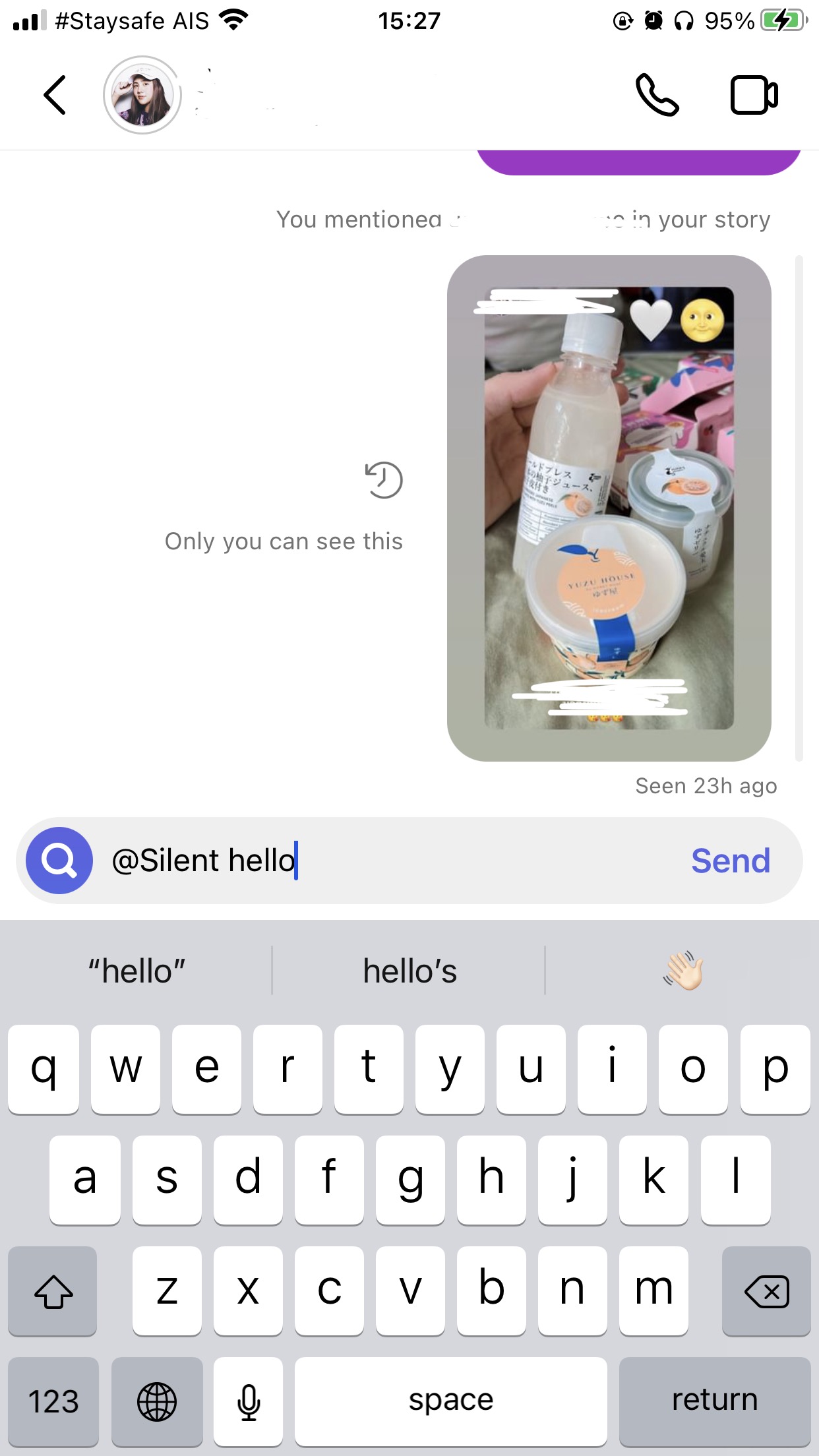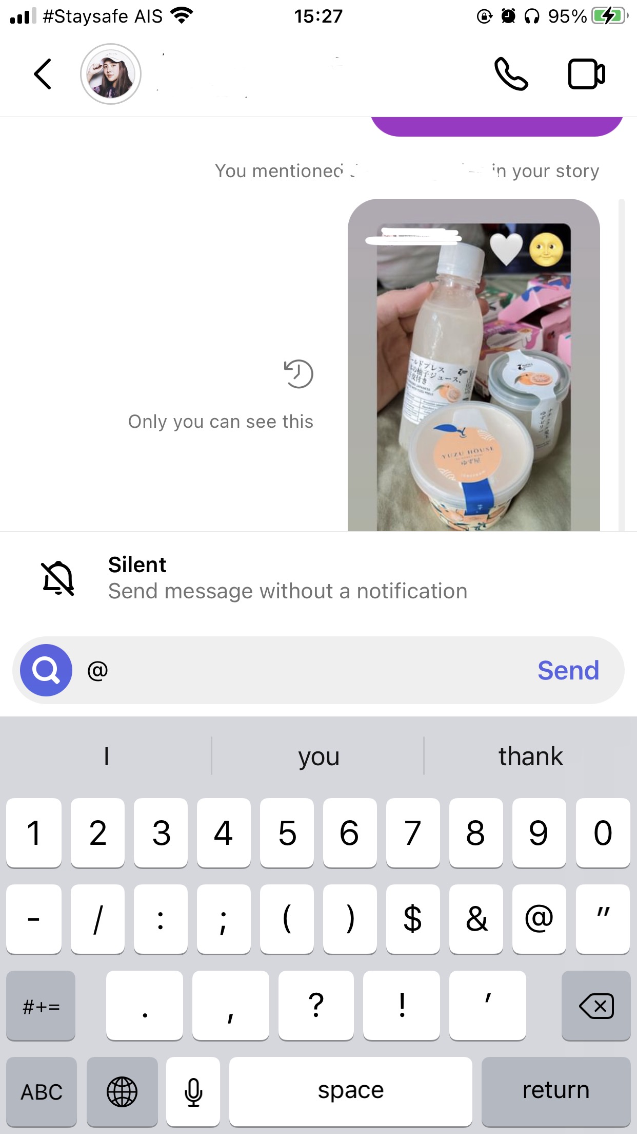 ล่าสุด Instagram ก็สามารถส่งข้อความแบบไม่แจ้งเตือนได้แล้ว แค่พิมพ์ @Silent และตามด้วยข้อความที่ต้องการส่งในช่องแชท เวลากดส่งไปก็จะไม่ไปเด้งแจ้งเตือนฝ่ายตรงข้ามแล้ว