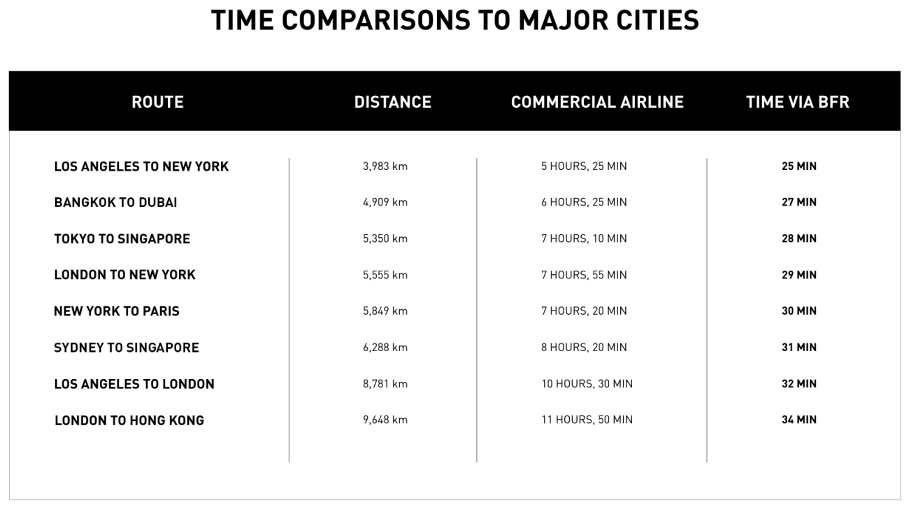 ซึ่งจากตารางประเมินเวลาเดินทางจะเห็นได้ว่ายิ่งเดินทางไกลแบบข้ามซีกโลกก็จะยิ่งลดเวลาได้มหาศาลเลยทีเดียวเมื่อเทียบกับการเดินทางด้วยเครื่องบินโดยสารในปัจจุบัน