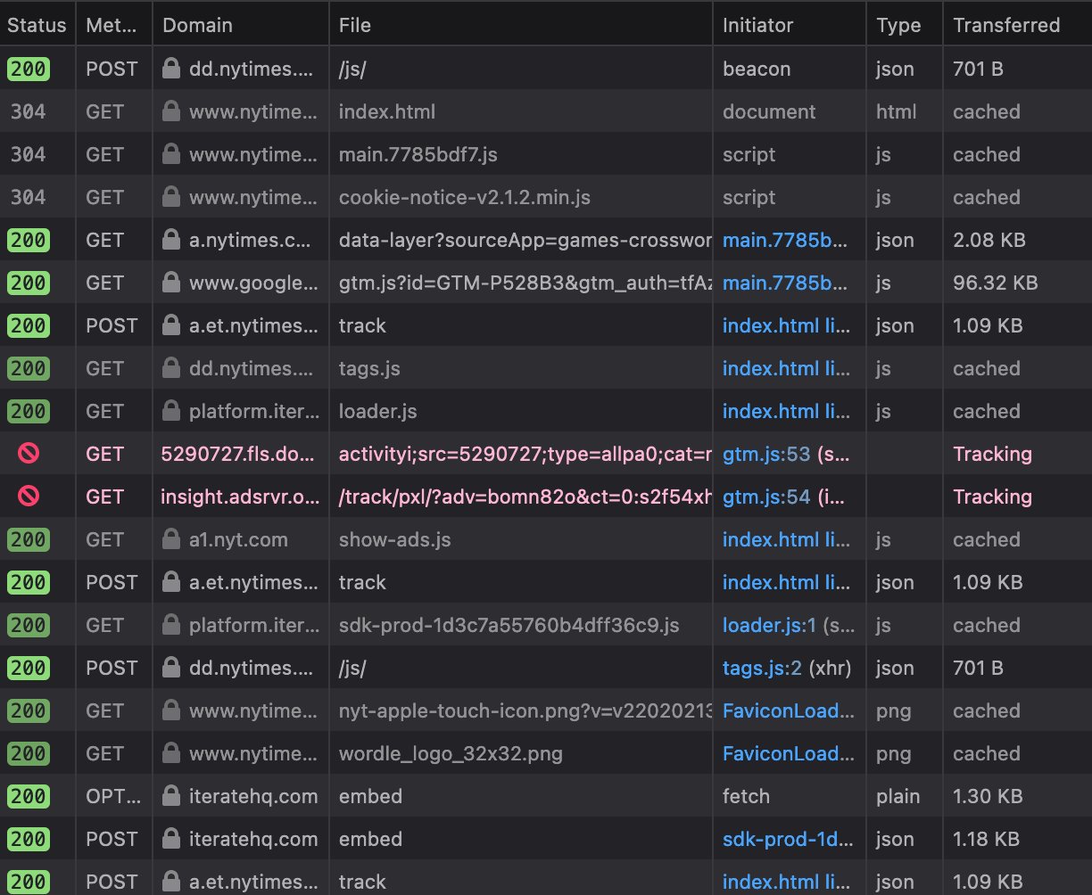 ทาง Gizmodo ได้ลองแกะเข้าไปในโค่ดของเว็บ Wordle ก็พบว่ามีการฝัง ad tracker เพื่อติดตามข้อมูลผู้ที่เข้ามาเล่นเกม เช่นช่วงเวลาที่เล่น เล่นเกมจากสถานที่ไหน เล่นผ่านอุปกรณ์อะไร จากนั้นจะส่งข้อมูลให้กับบริษัท third-party อย่าง Google เพื่อนำข้อมูลเหล่านี้ยิงโฆษณาที่ผู้ใช้แต่ละคนน่าจะสนใจกลับมา